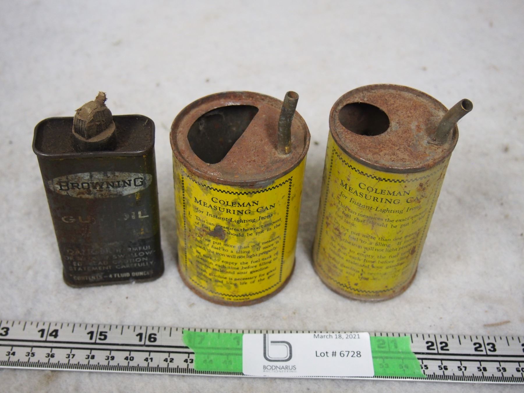 Bunning Gun Oil Metal Tin and 2 Coleman Measuring Cans