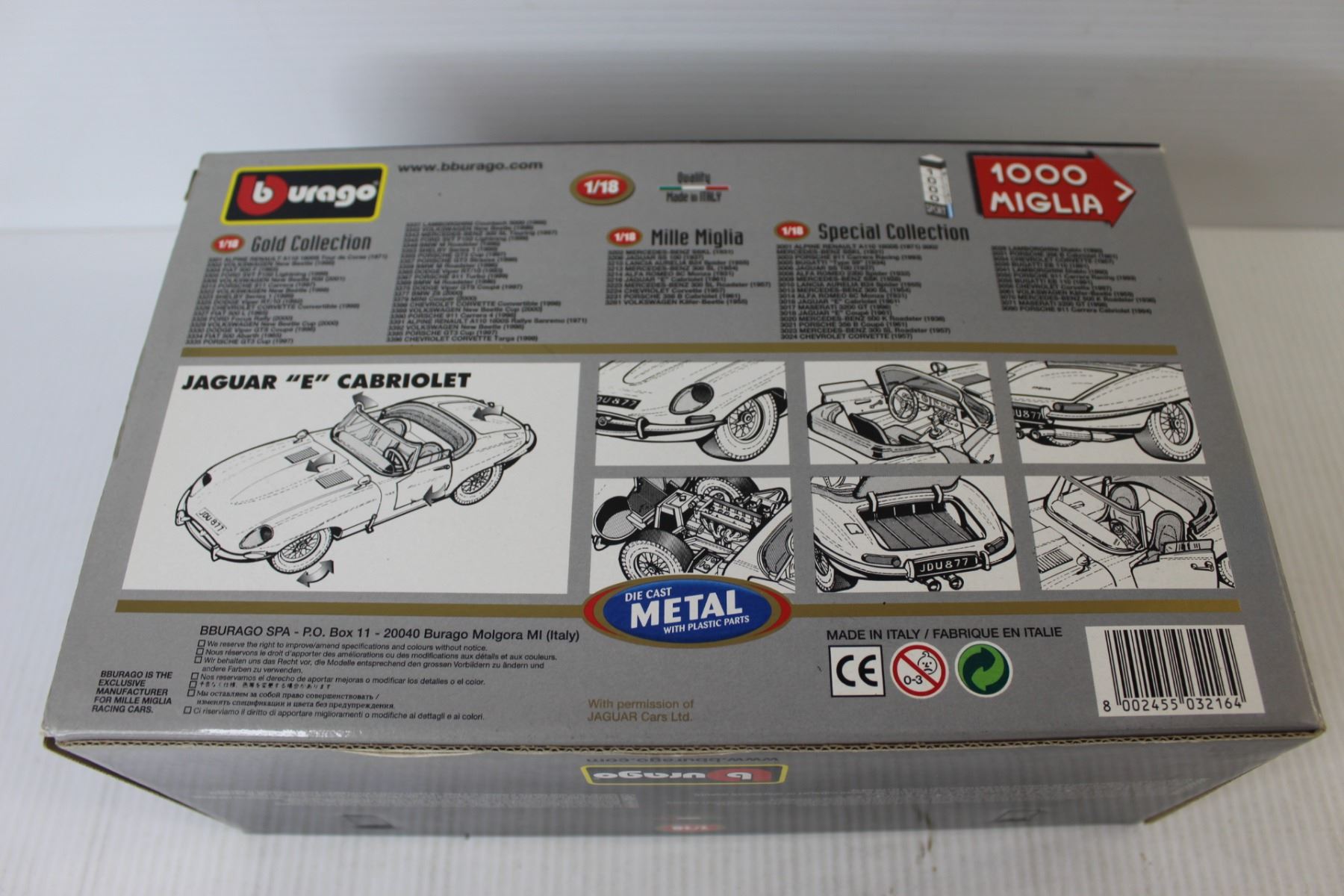 Burago Jaguar "E" Cabriolet (1961) - 1/18 Scale - New In Box