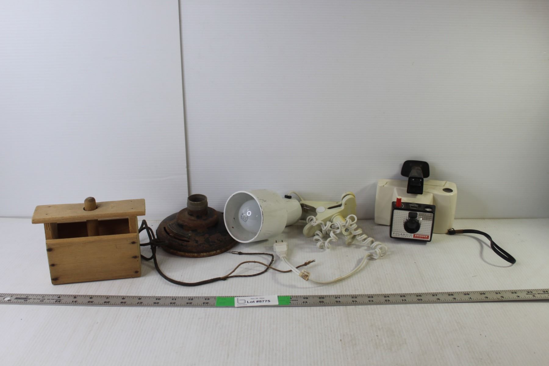 Butter Press, Vintage Polaroid Swinger Camera, Lamp- Powers On