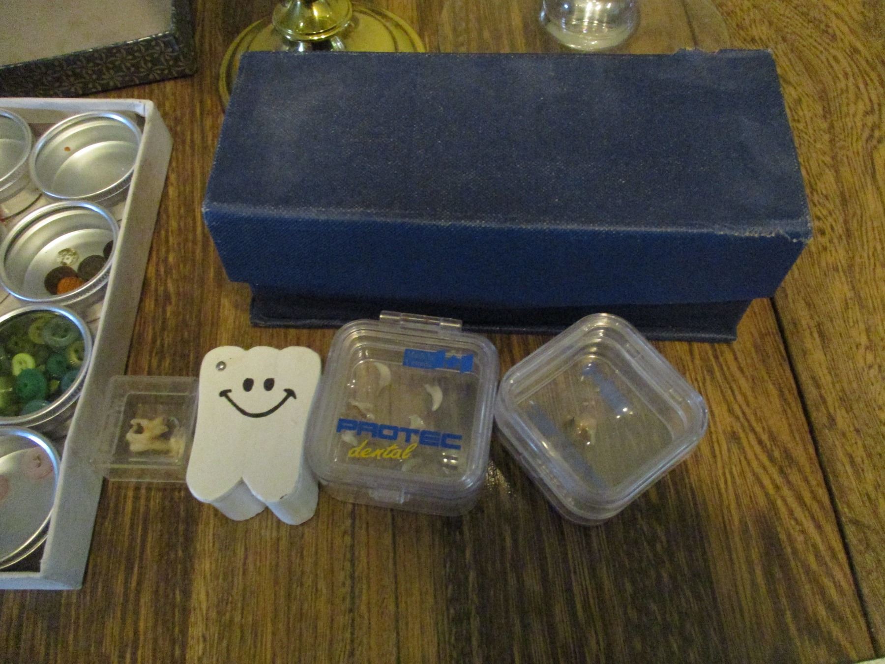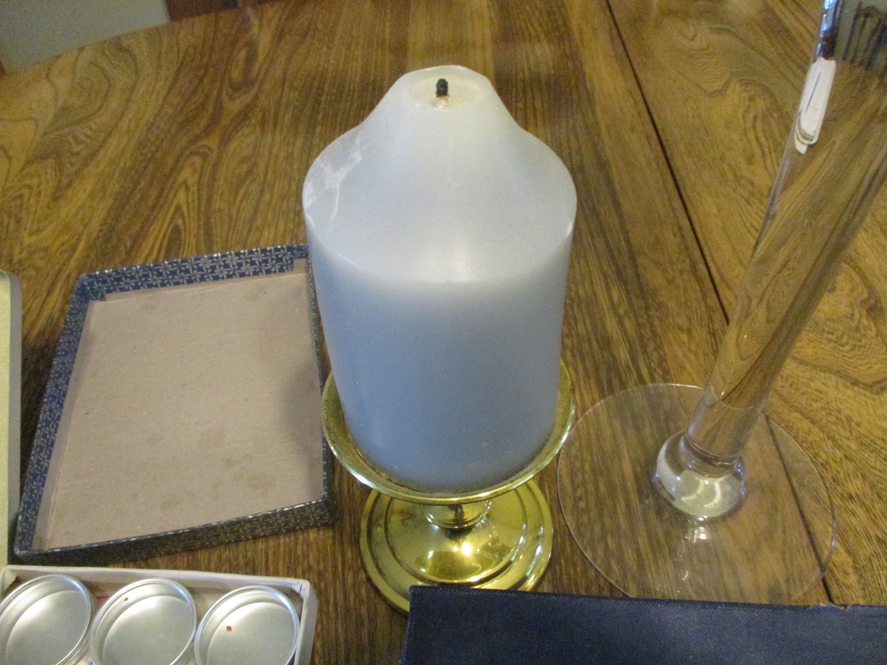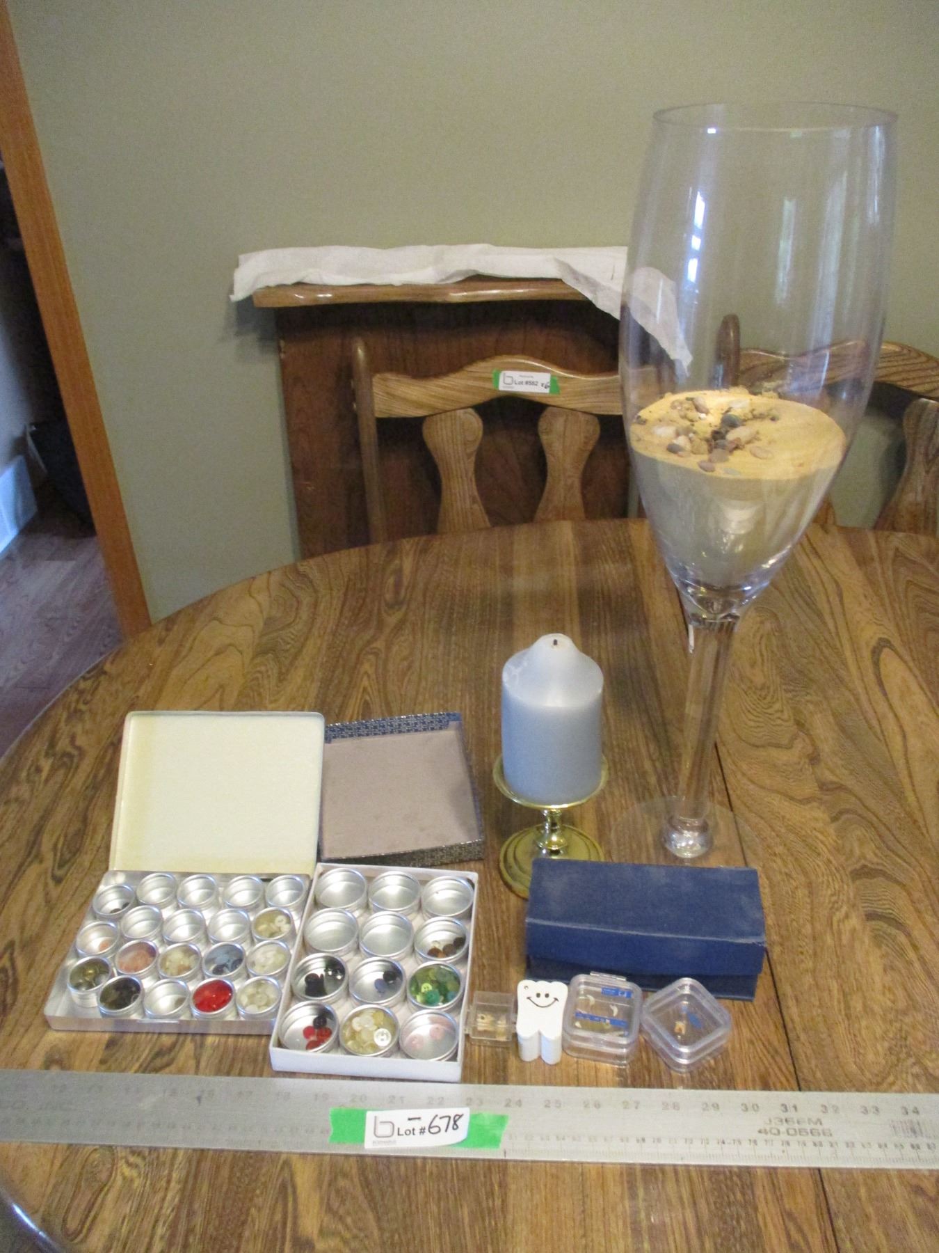 Buttons, Containers, Candle on Stand, Decorative Glass 22"