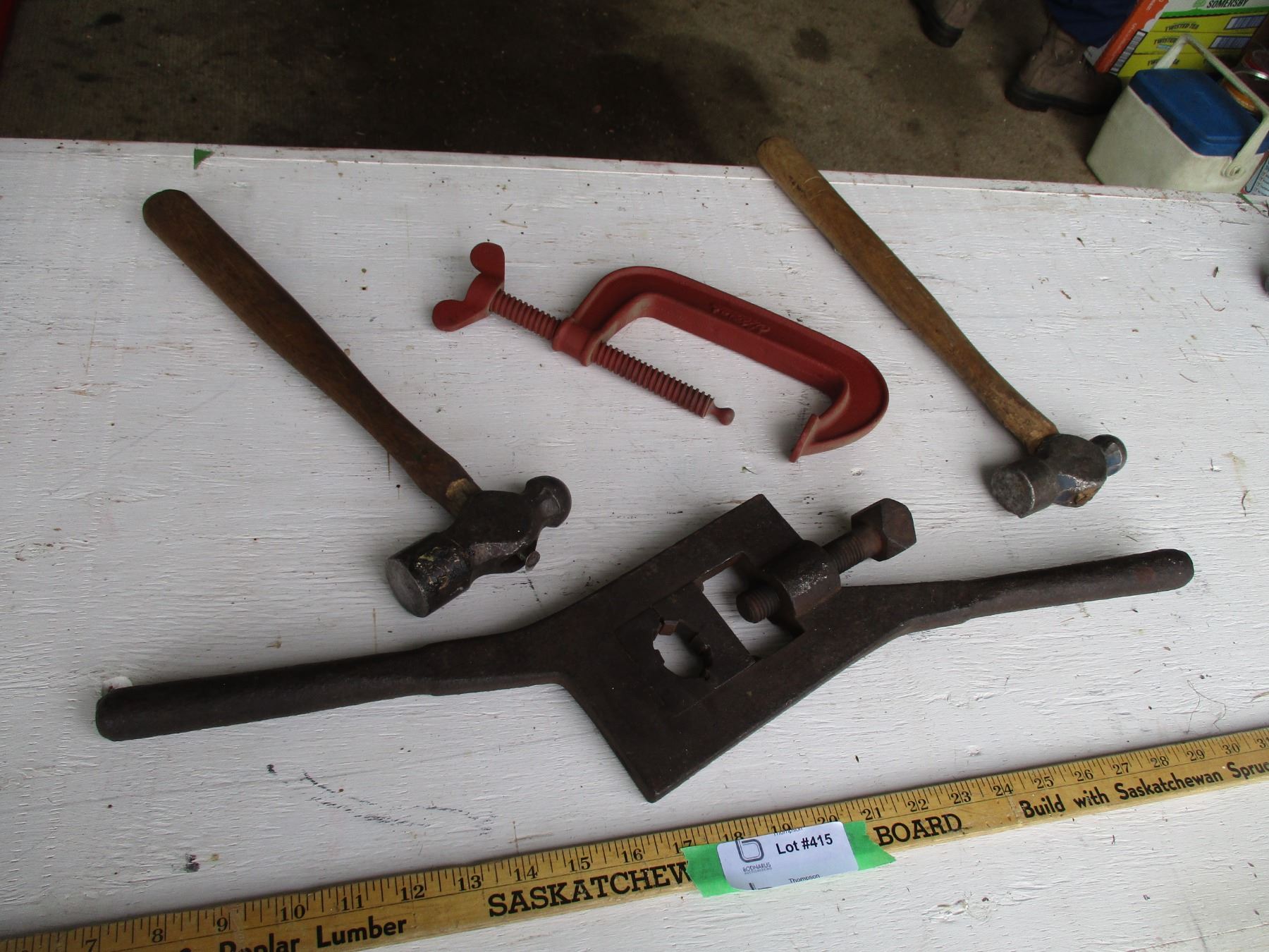C-Clamp, (2) Hammers, Vintage Threading Tool