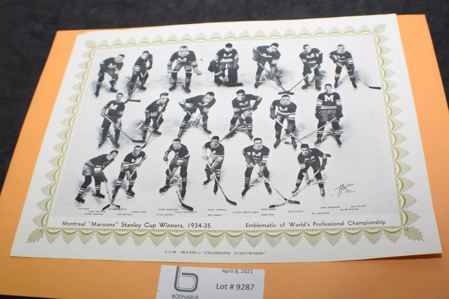 CCM HOCKEY TEAM PICTURE 1934-35 MONTREAL MAROONS