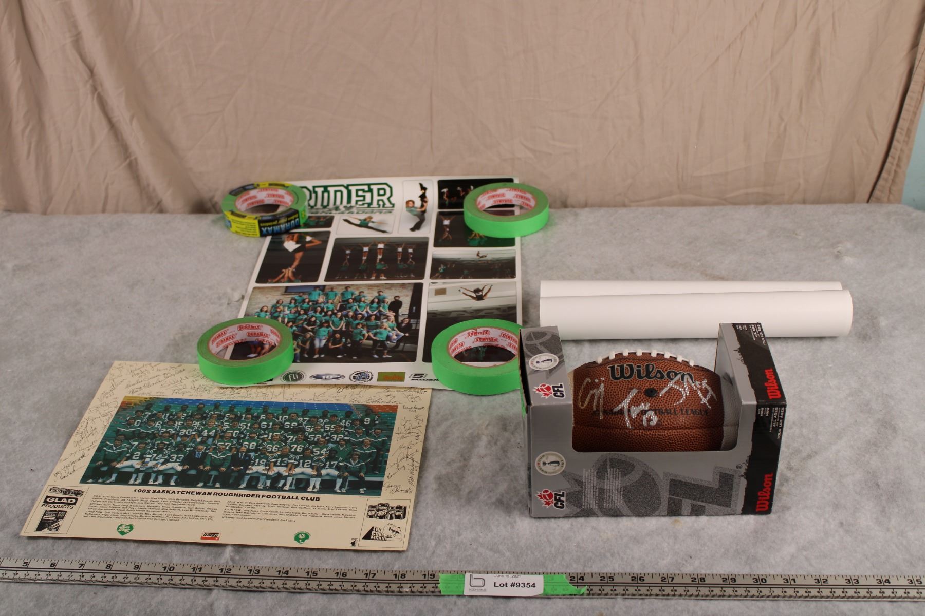 CFL Signed Football (Hedley half time Band) + 1982 Print + Cheerleader Posters