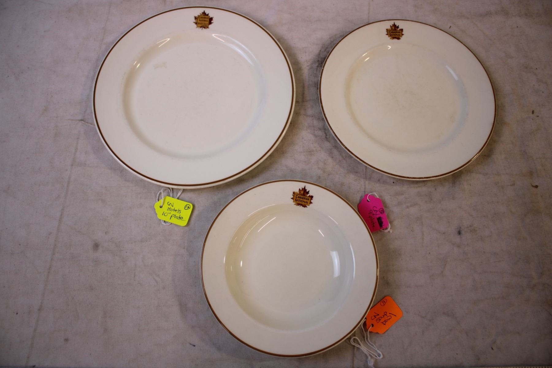 CN 9" Plate + CN Hotels 10" Plate + CN Soup Bowl 7.5" rim