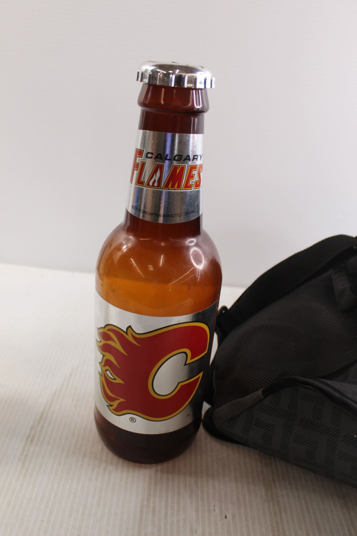 Calgary Flames Bottle Coin Bank & Insulated Cooler Bag