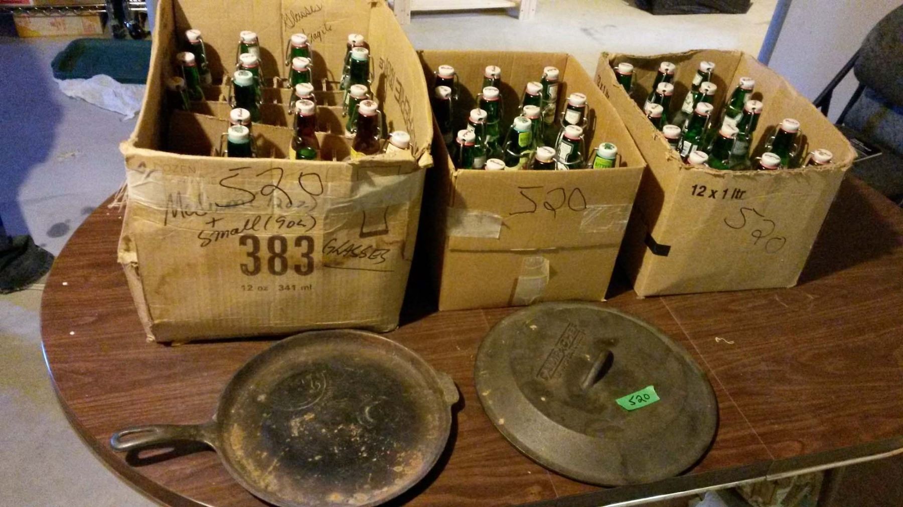 Camp Chef Skillet & Empty Lager Bottles (3 Boxes)
