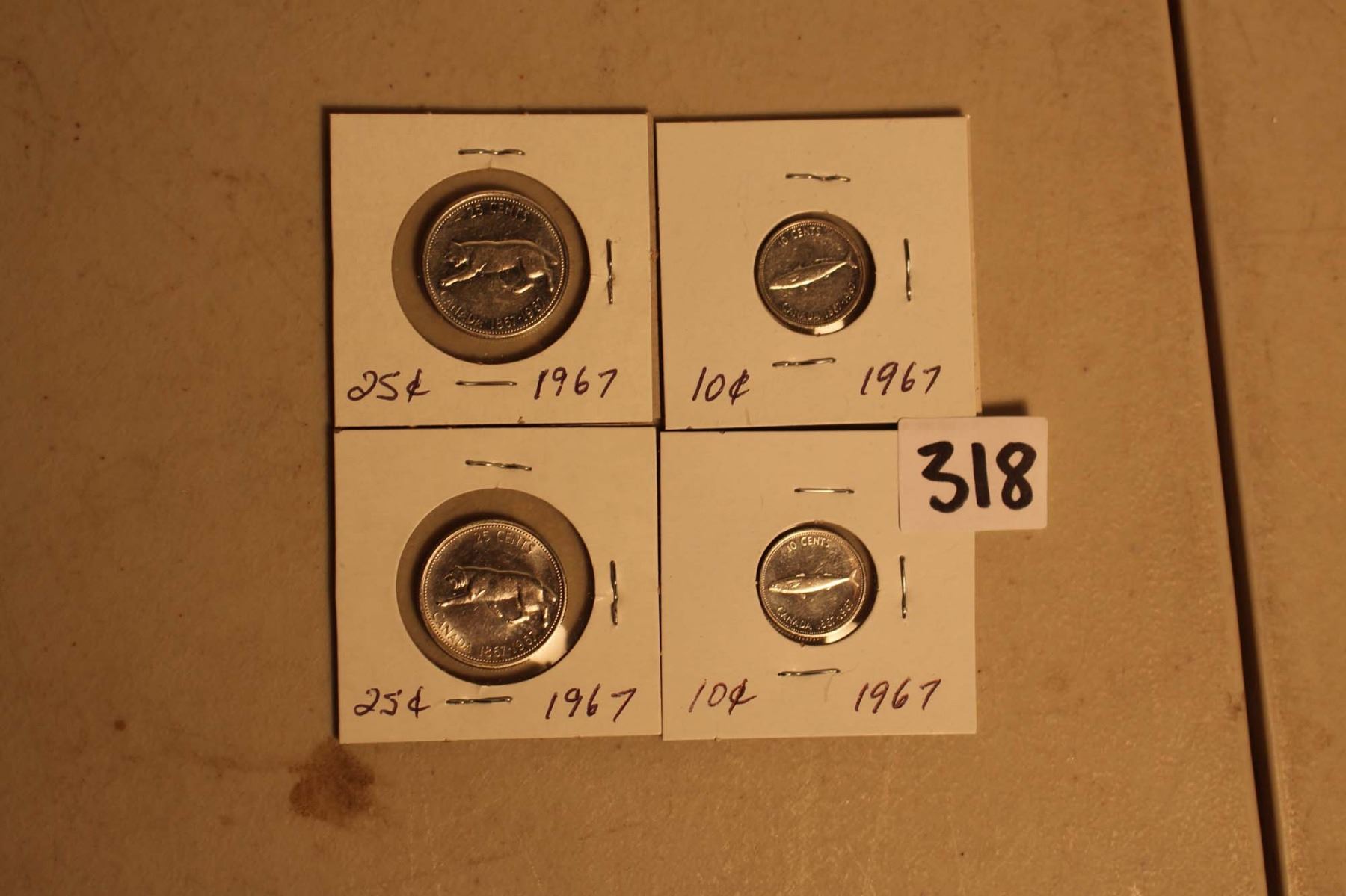 Canada 1967 Centennial Coins (Cougar Quarters & Mackeral Dimes)
