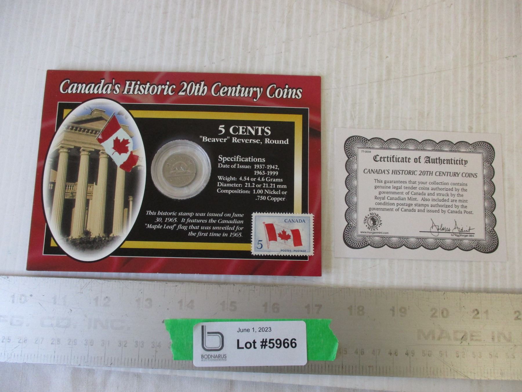 Canada's History 20th Century Coins w/ Certificate (5 Cent "Beaver")