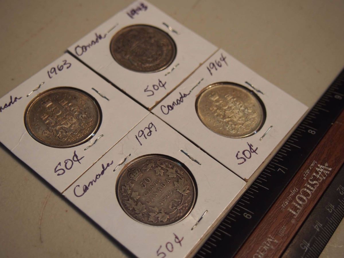 Canadian 50 Cent Pieces (4) (1929,43,63,64)