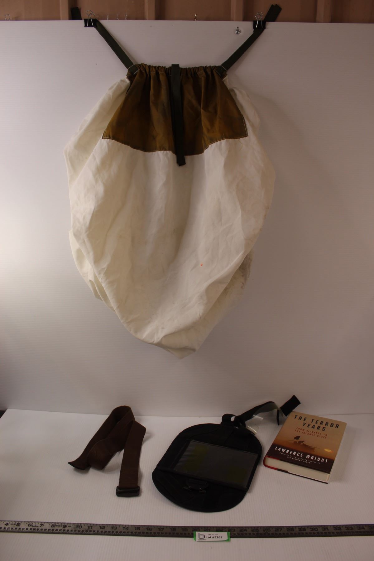 Canadian Army/Air Force Zojiruushi Black Canteen (Made in Japan), Winter Camo Backpack Cover, Men's Med. Expandable Belt, Pilots Navigation Kneeboard & "The Terror Years" by Lawrence Wright Book