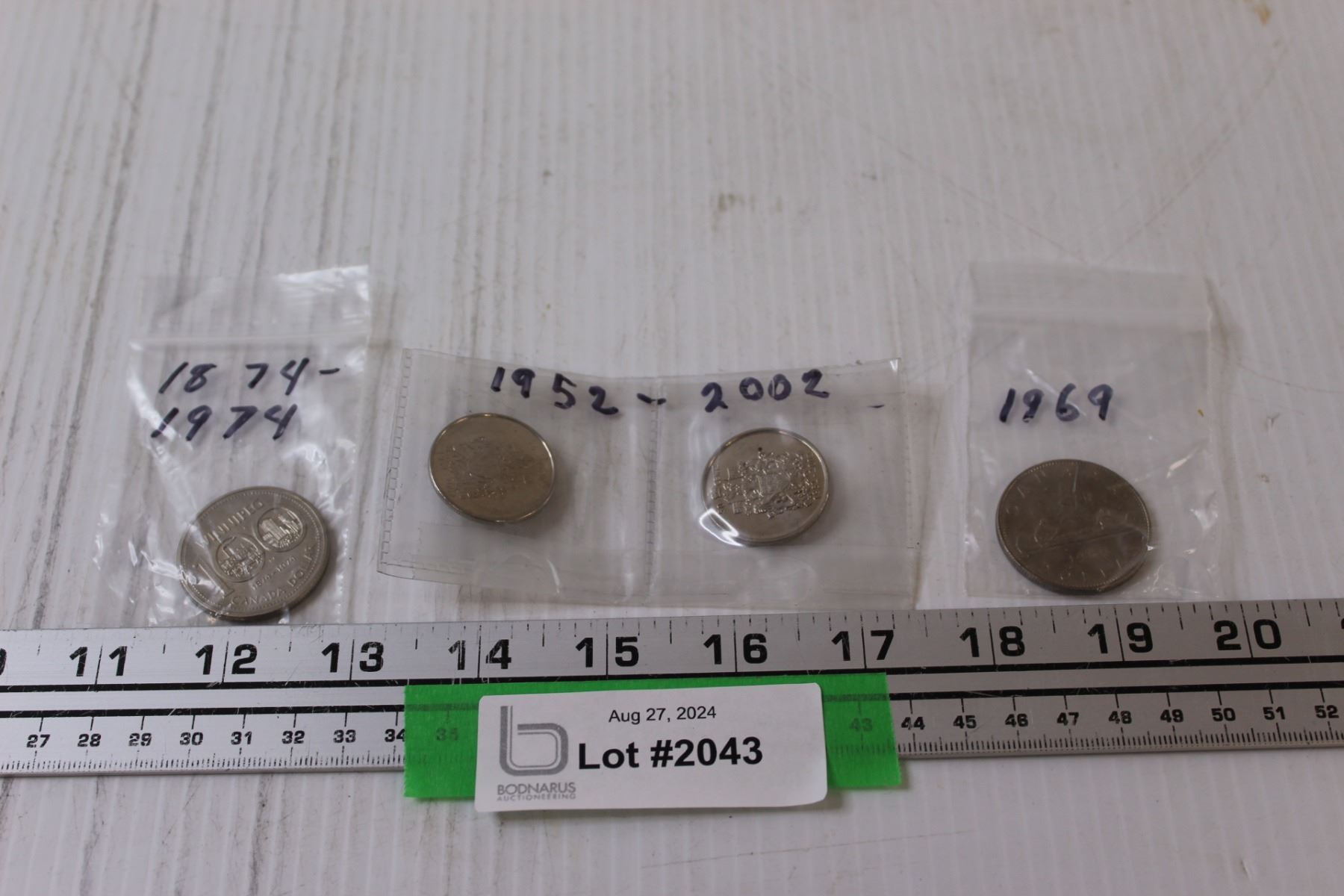 Canadian Dollar 1974 & 1969, (2) Half Dollars 2002 (100 Year Edition)