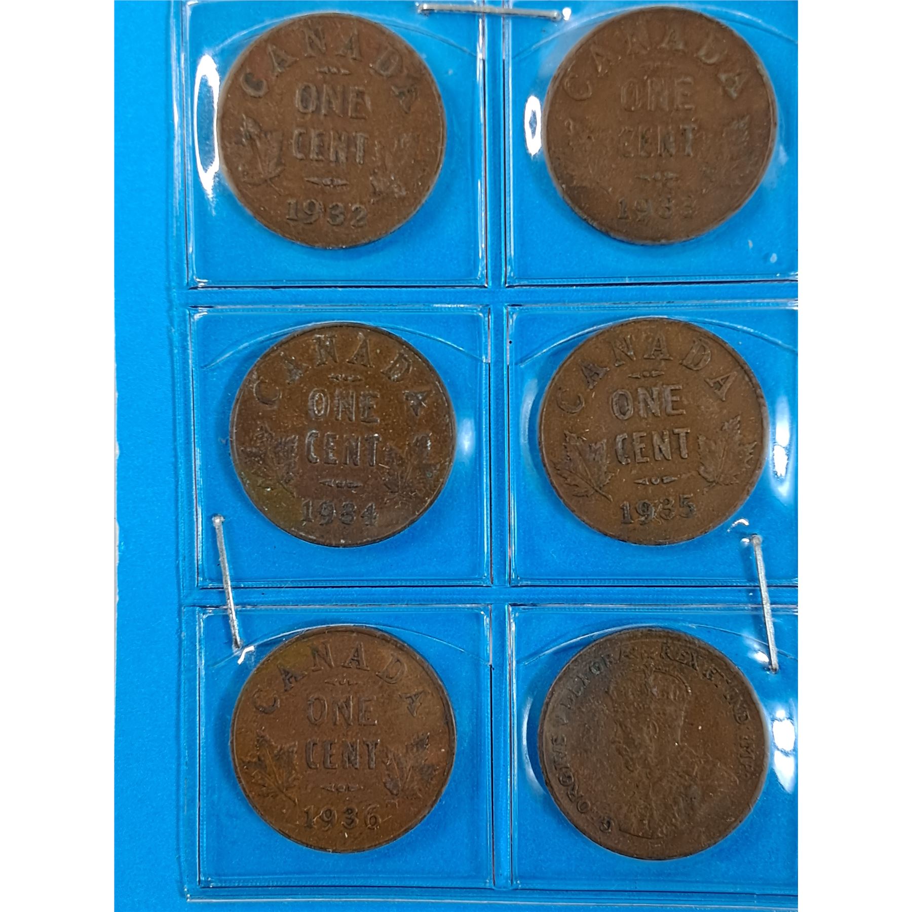 Canadian five CentPieces (x6). Date ranges from 1932-1936.