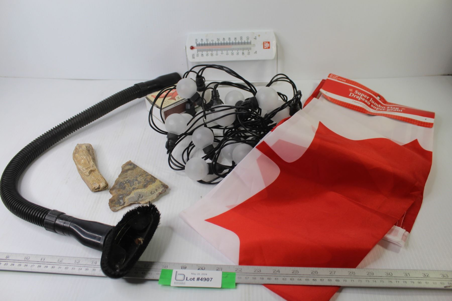 Canadian Flag (new - 30" x 60") - Sting Lights - Petrified Wood - Rock Slice - Vacuum Hose - Red Bird Matches