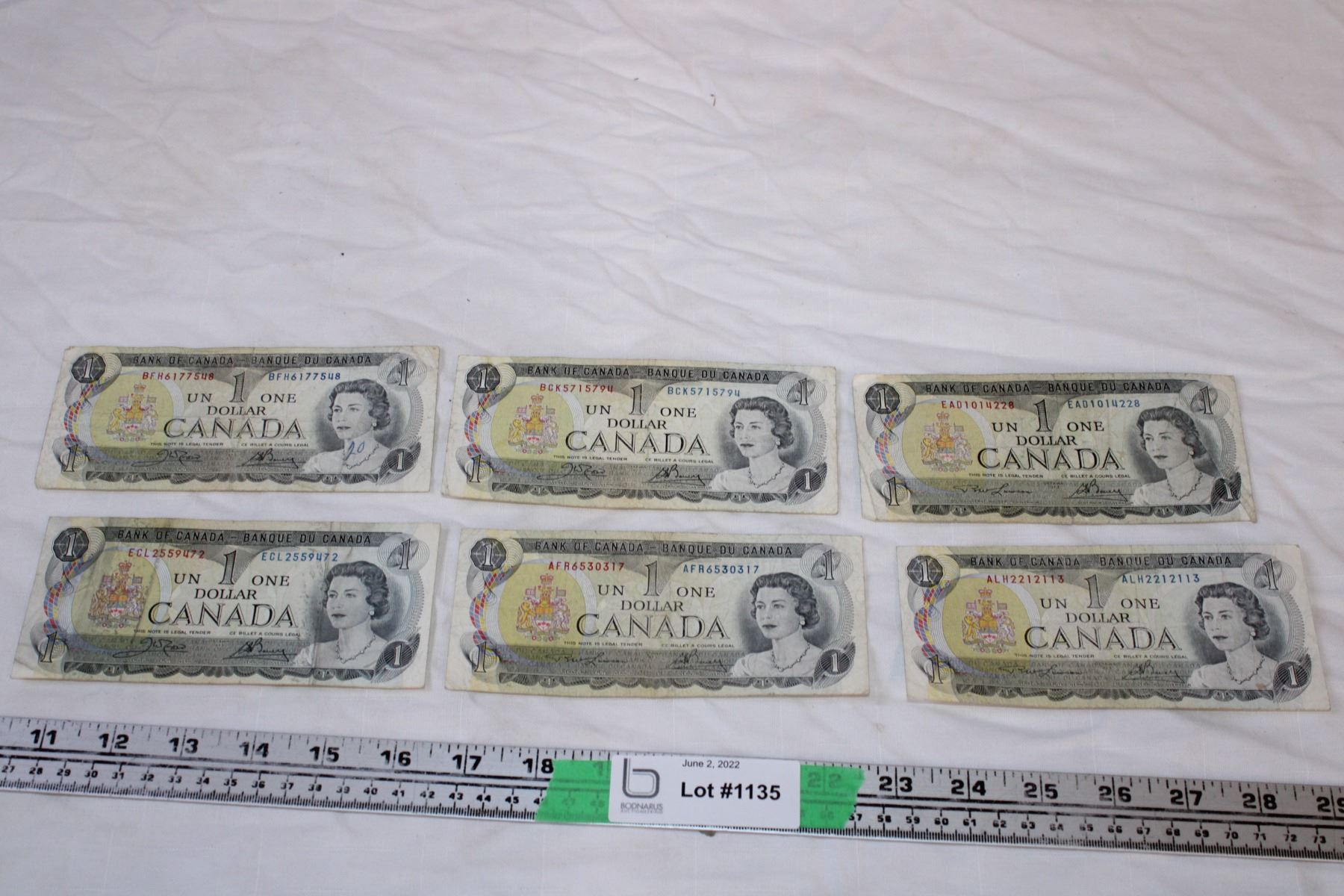 Canadian One Dollar Bills (6)
