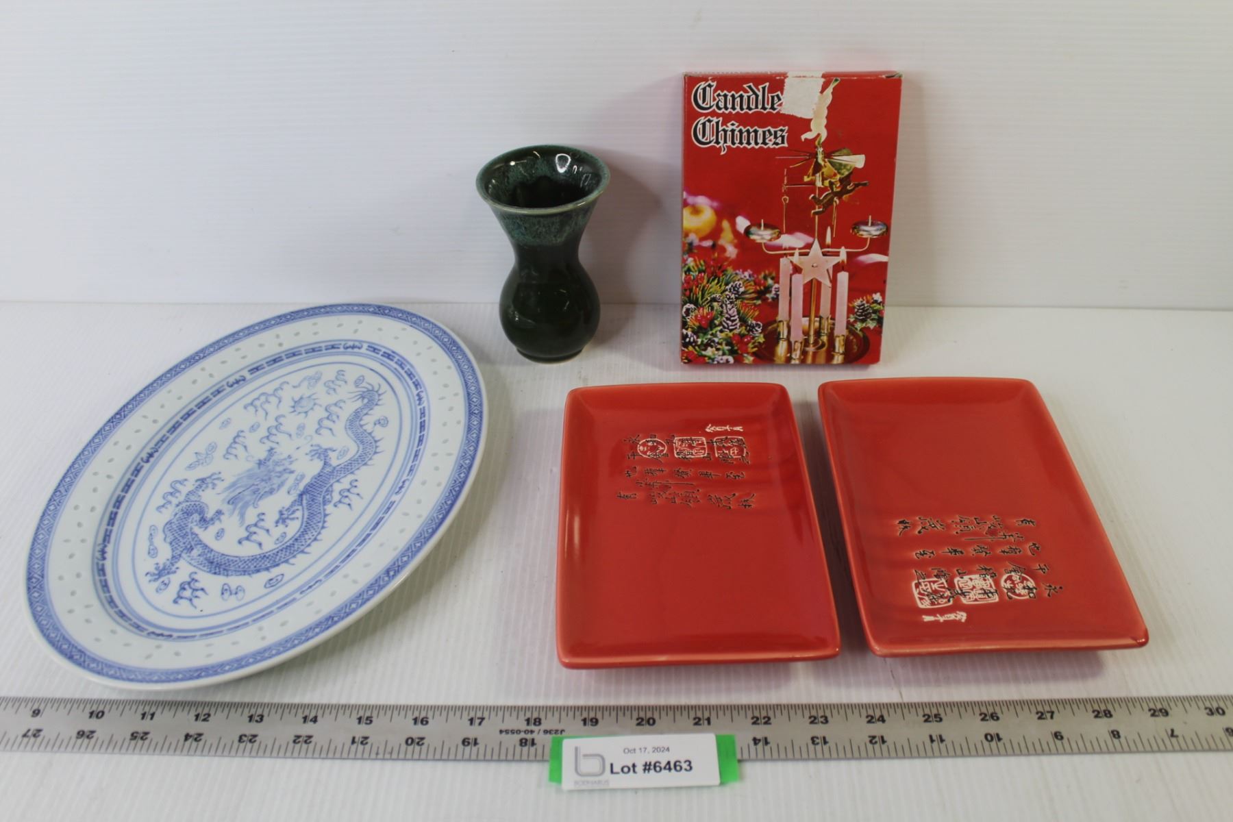 Candle Chimes - (3) Asian Themed Plates - Vase