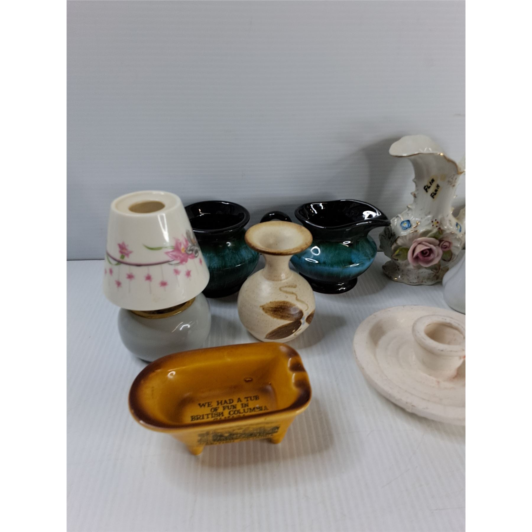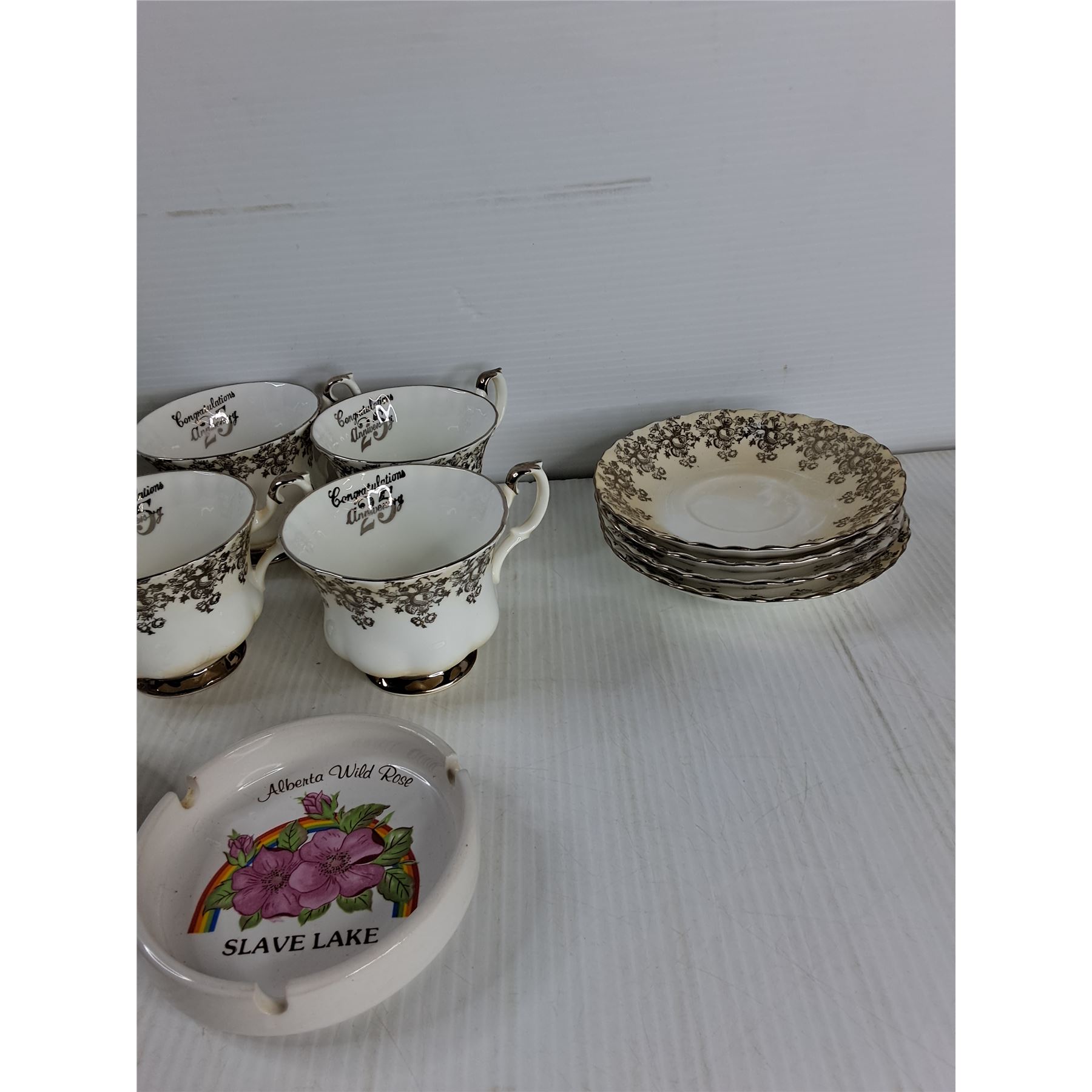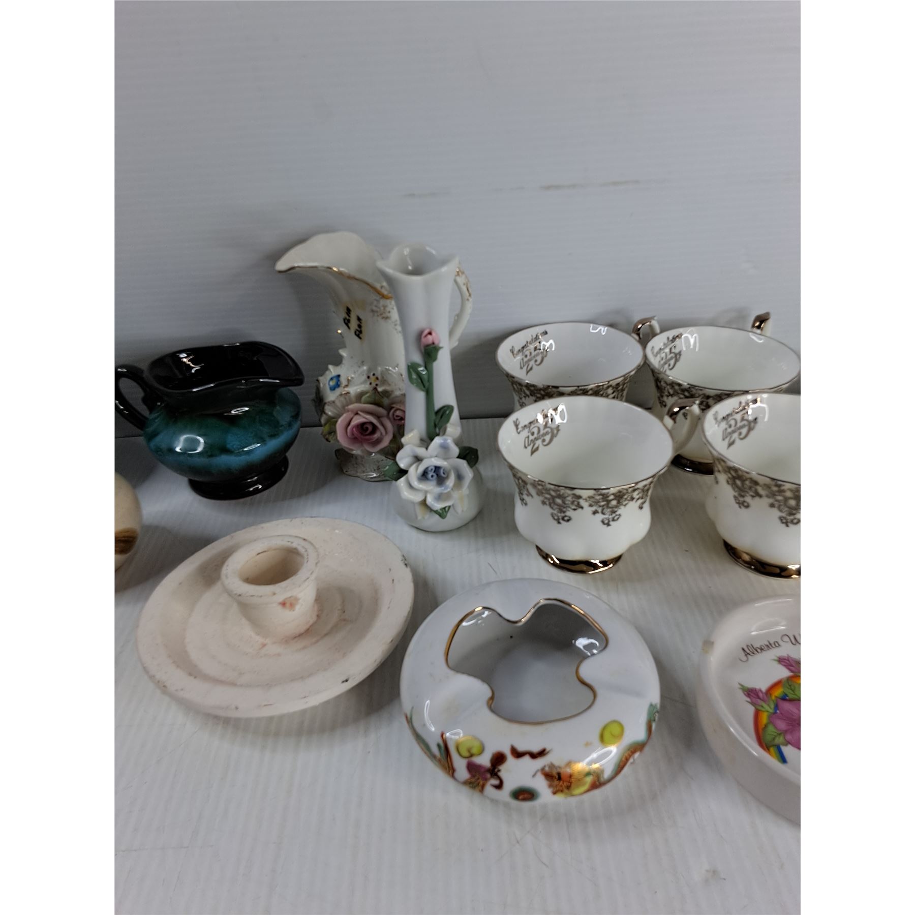 Candle Holder, (4) Cups And Saucers, Ashtray, Misc