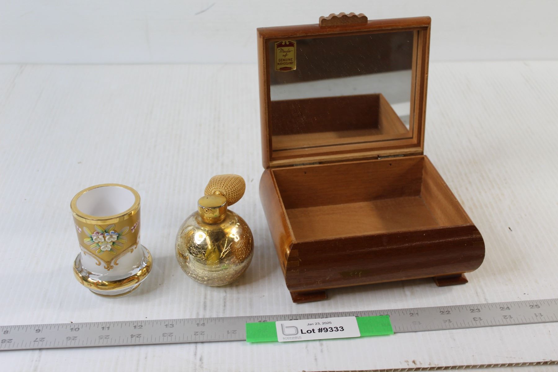 Candle Holder, Brass perfume Bottle Decor, Wooden Box With Mirror