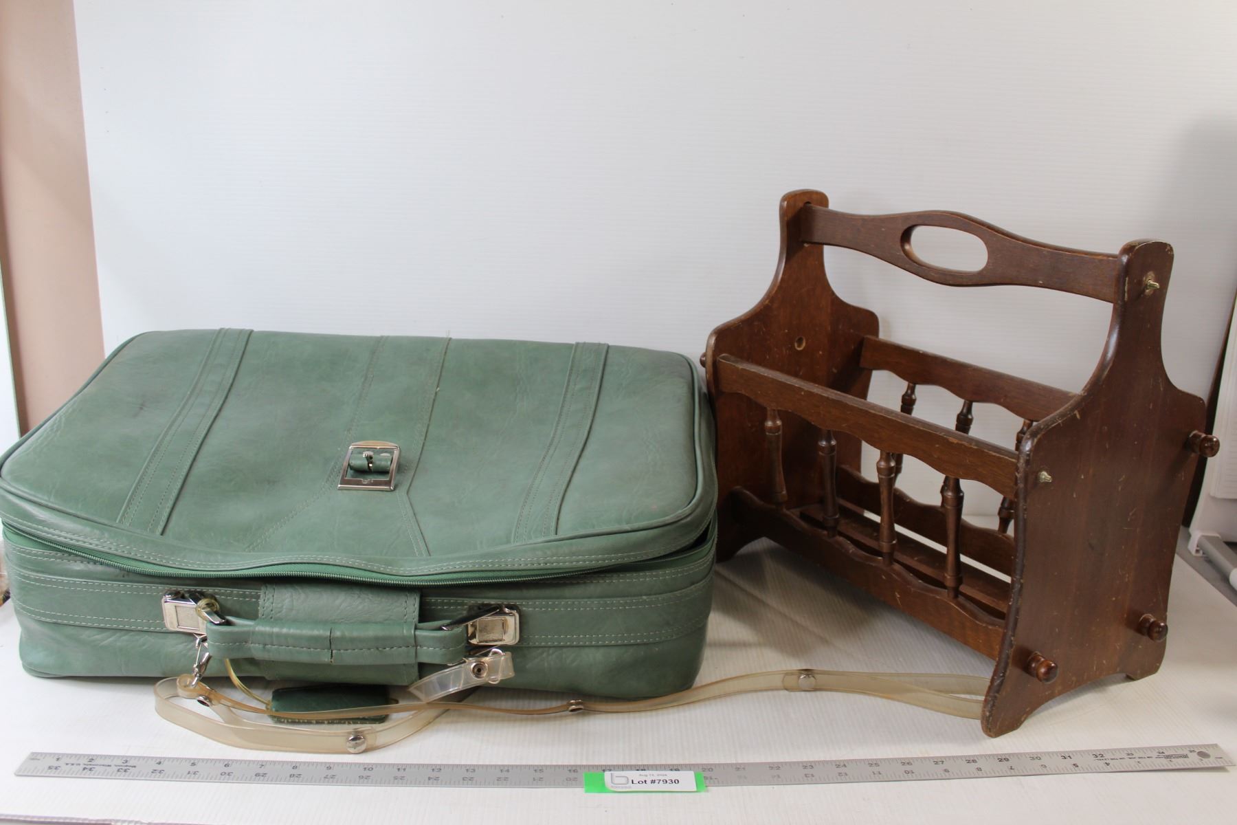 Caribbean Samsonite Big Green Briefcase/Suitcase, Wooden Magazine Rack