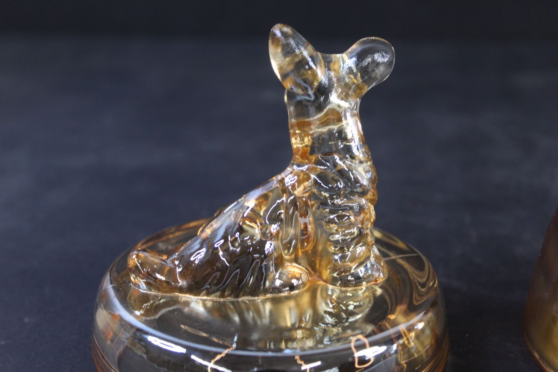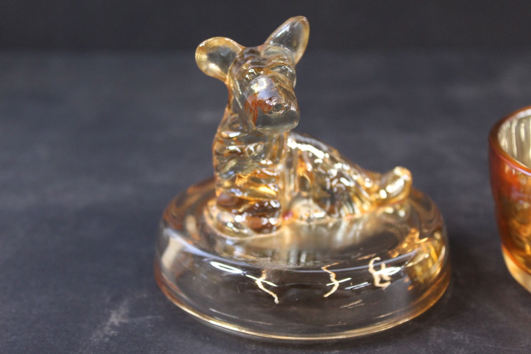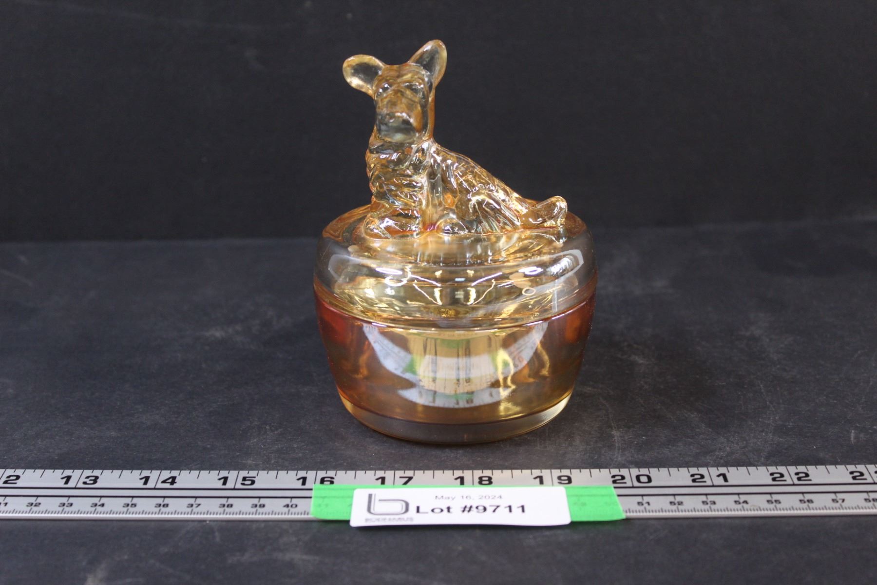 Carnival Glass Marigold Scotty Dog Covered Powder Jar 1930's