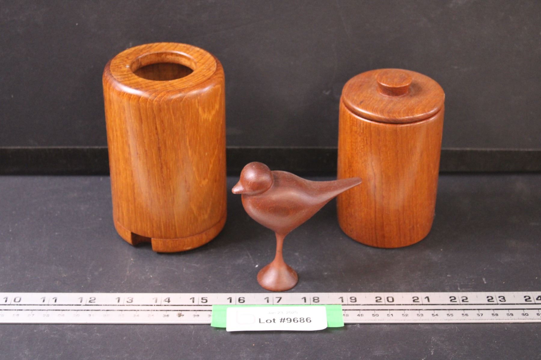 Carved Wood Bird Home Decor & (2) Wooden Holders