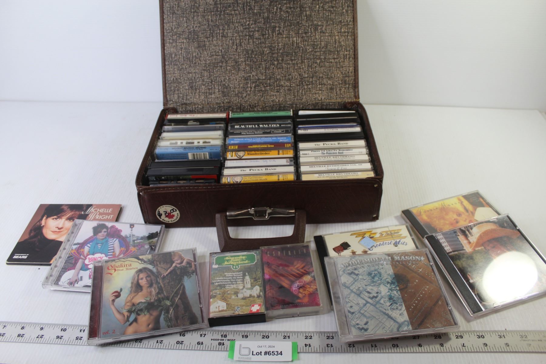 Cassette Case w/ 34 Cassette Tapes - Country - Waltzes - Polka - (7) CDs - ZZ Top - Wide Mouth Mason - Lorrie Morgan