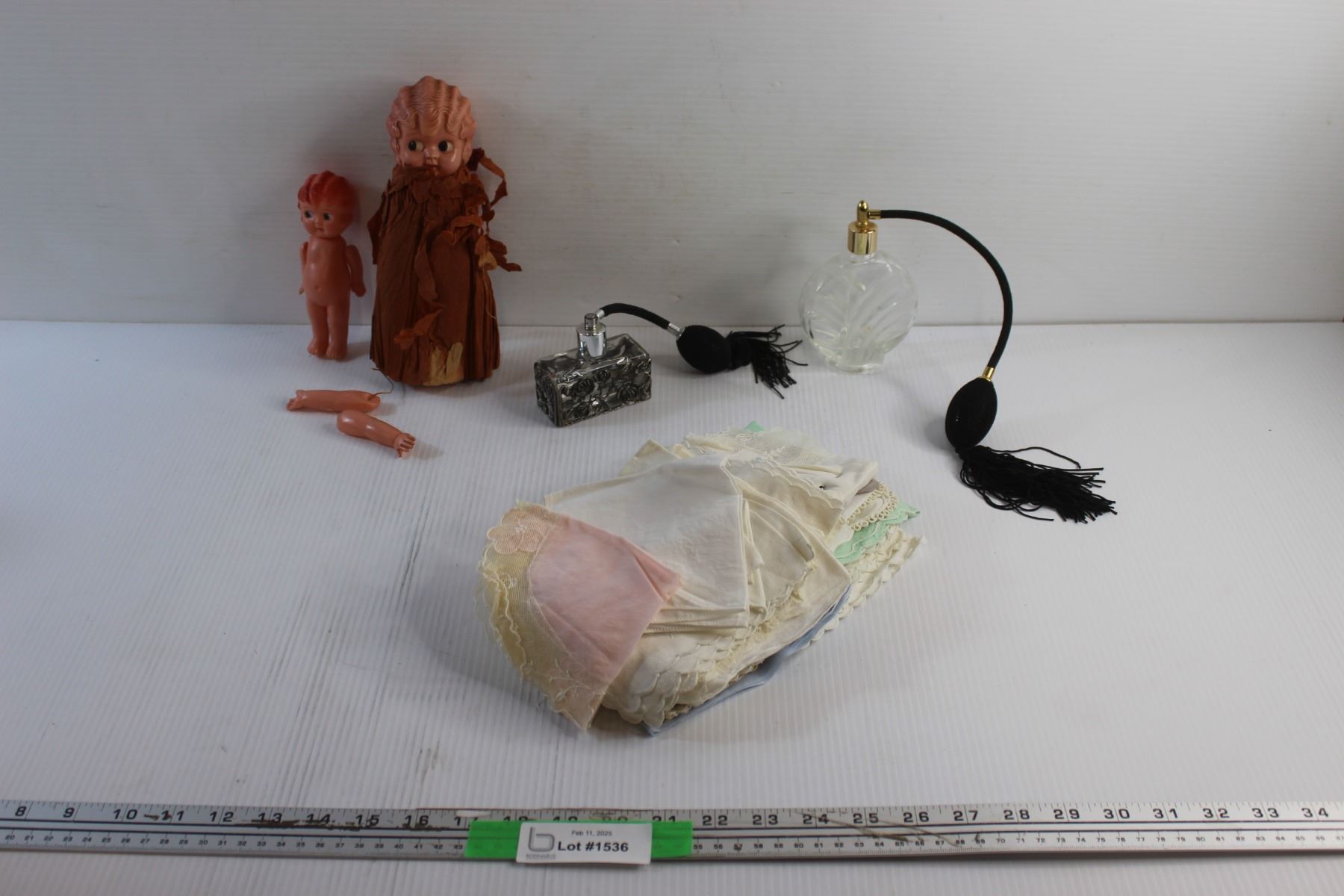 Celluloid Kewpie Dolls, Perfume Bottles and Hanker Chiefs