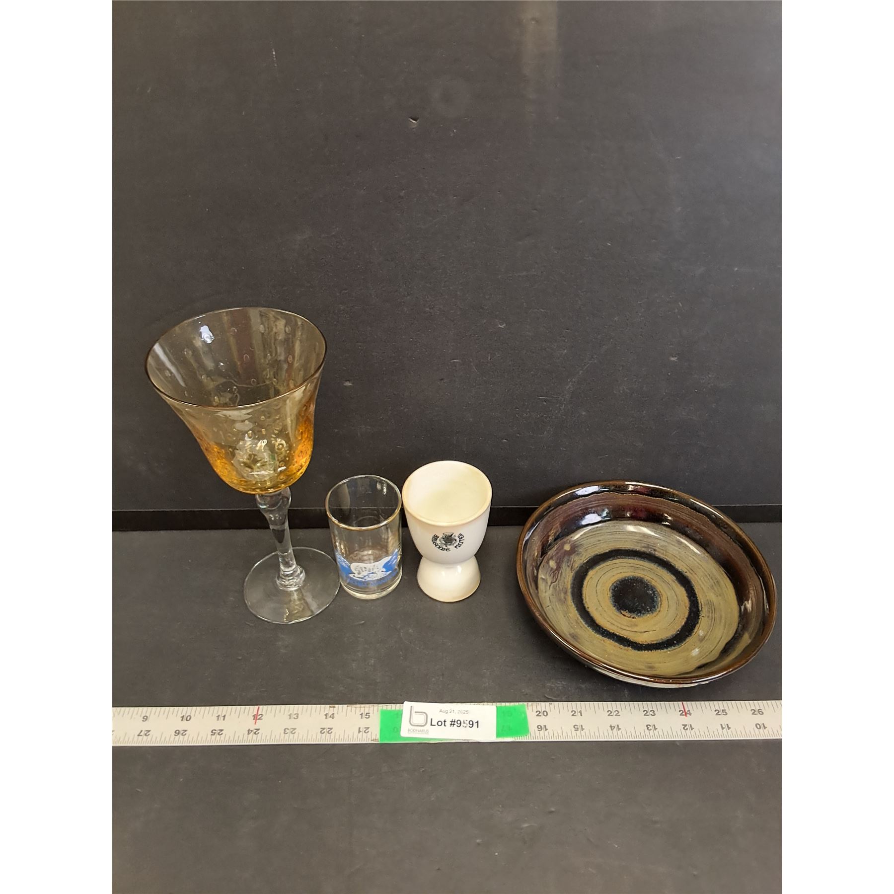 Ceramic Bowl 7.5", Wine Glass 9" Tall, (2) Souvenir Glasses