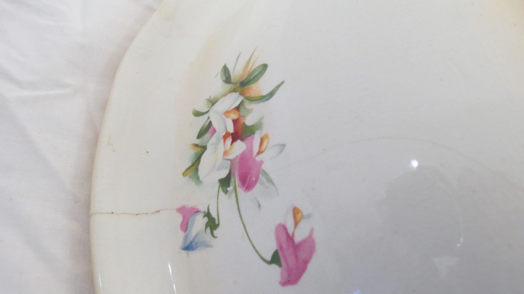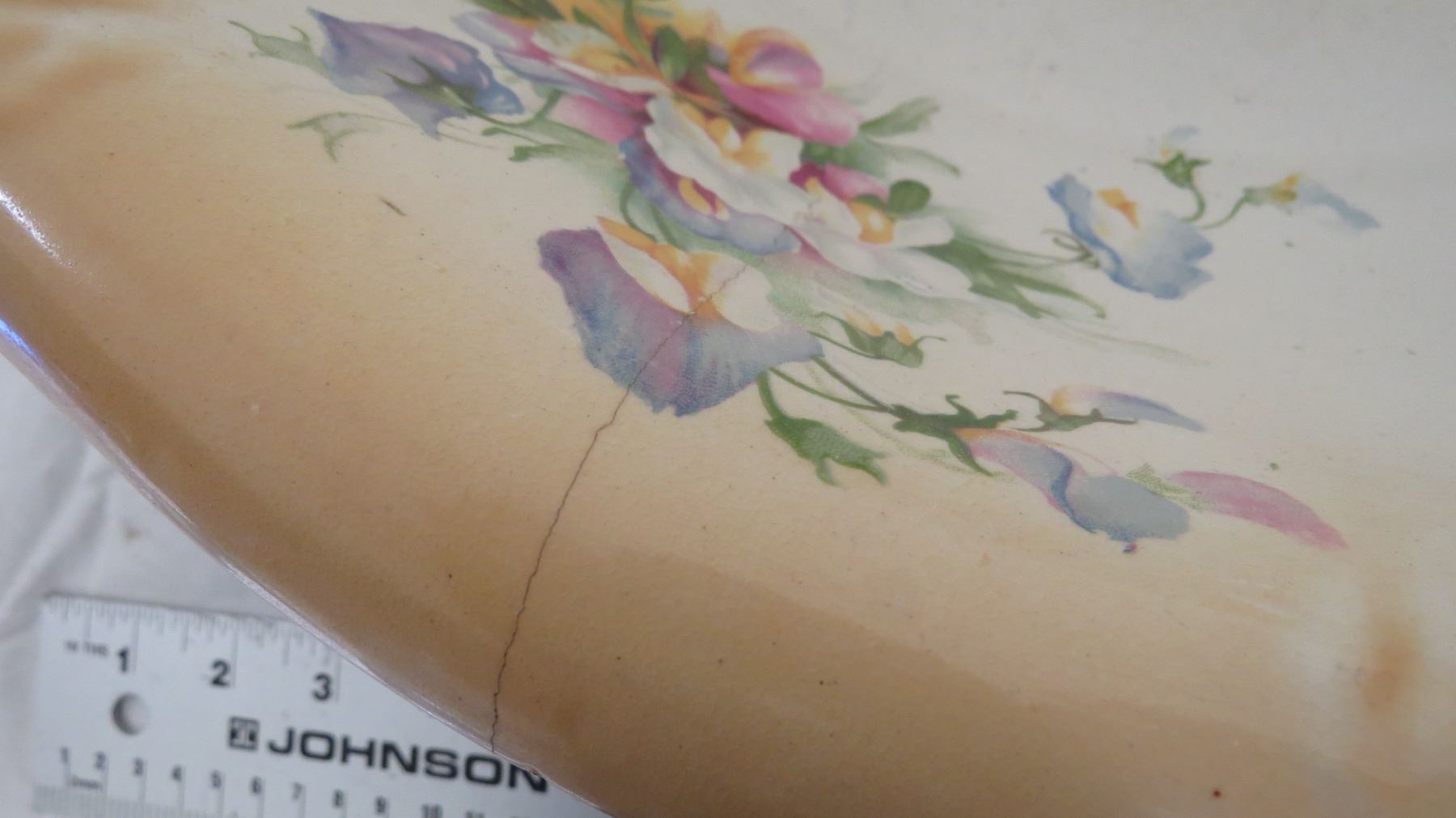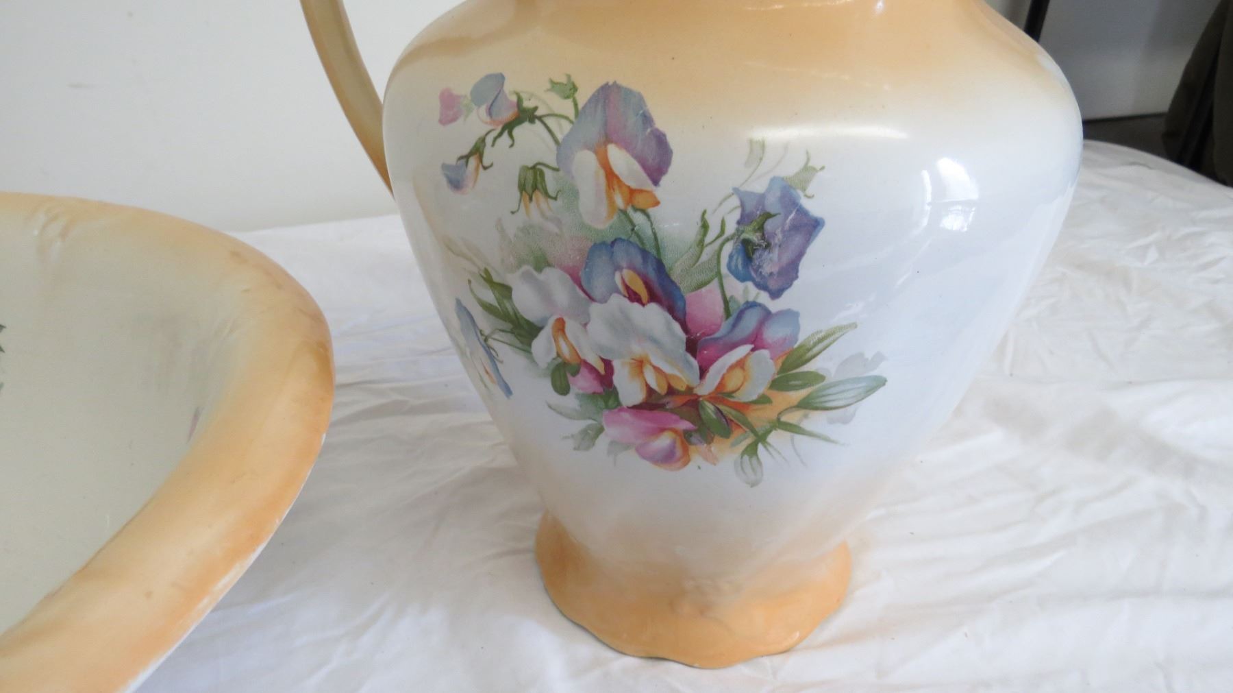 Ceramic Bowl + Pitcher (bowl has hairline crack, pitcher small chip)