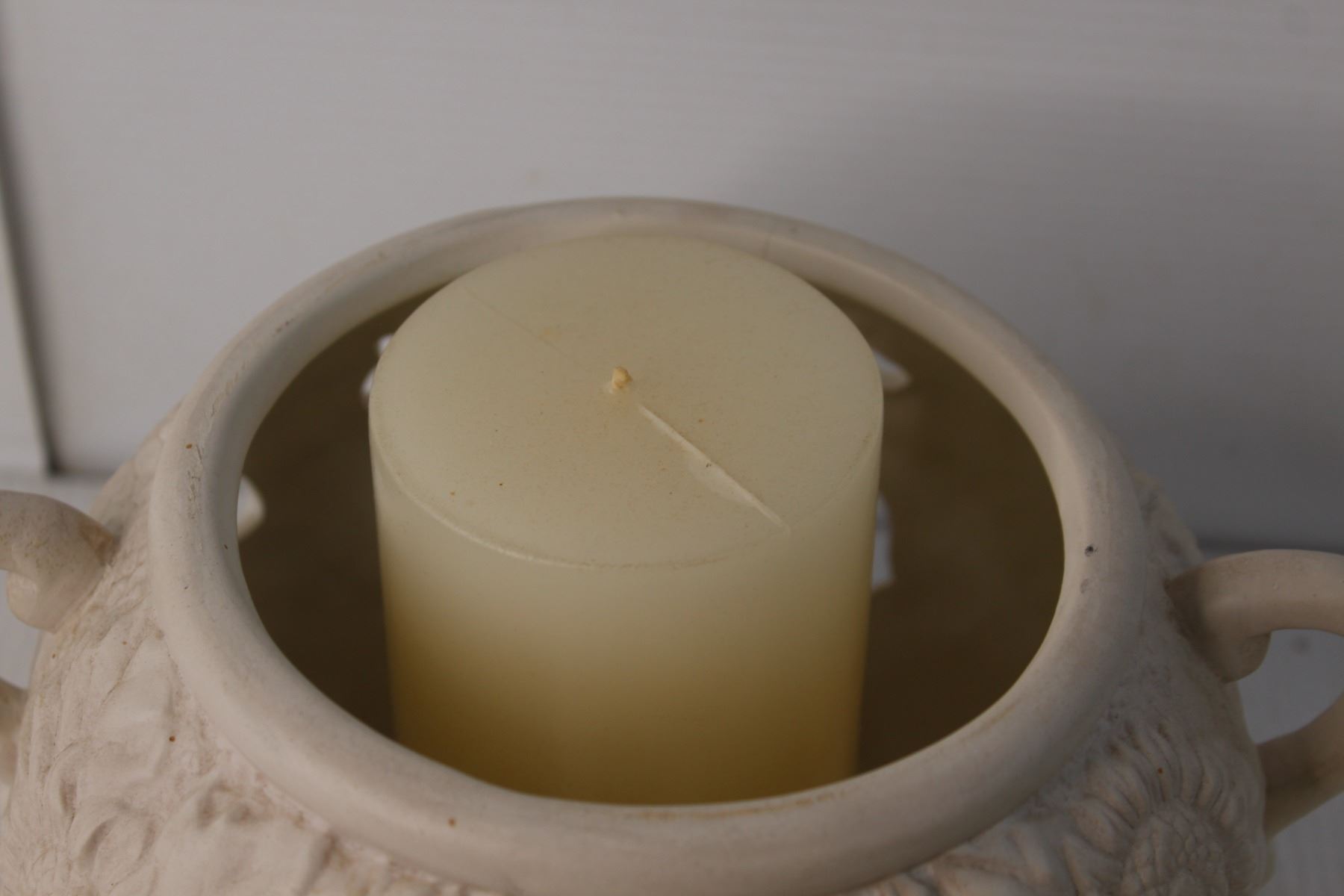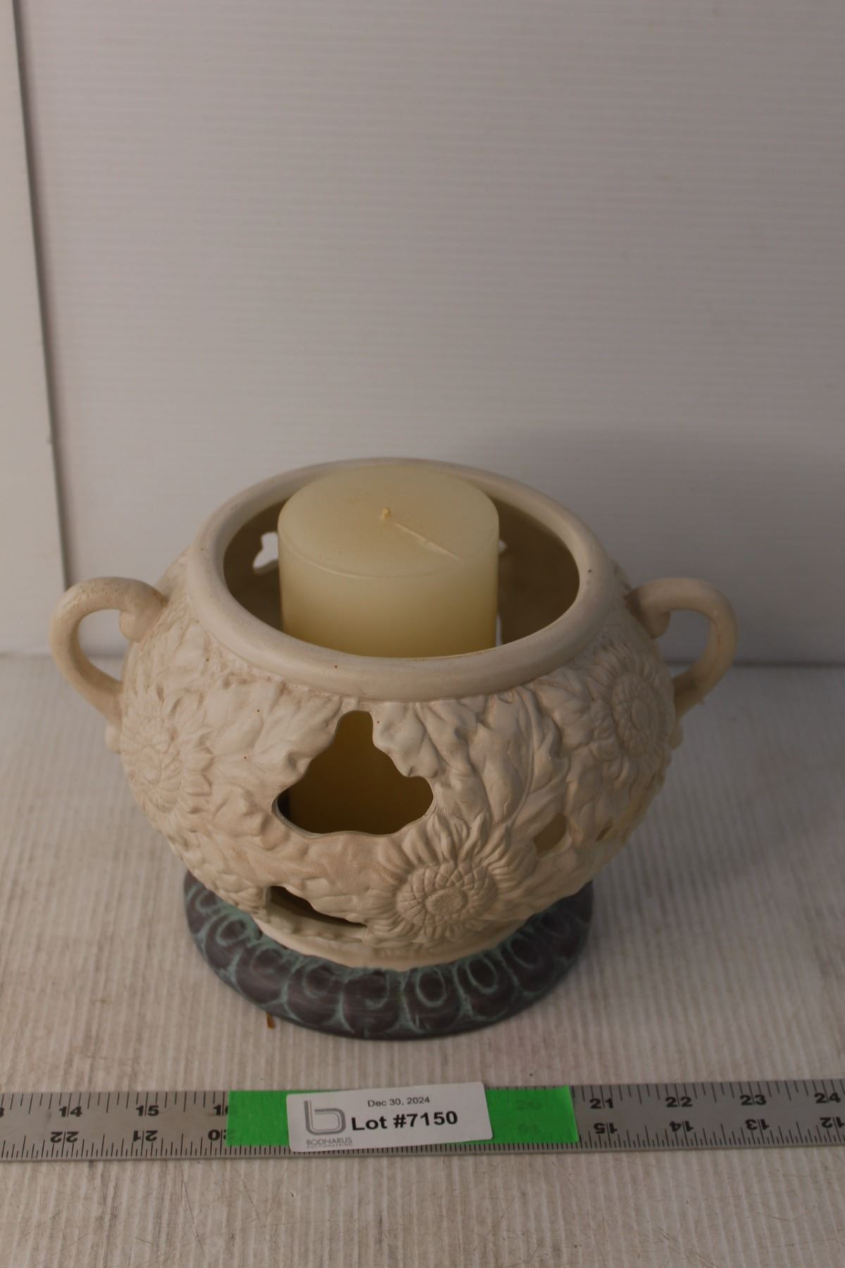 Ceramic Candle Holder & Candle 6" Tall x 10" Wide