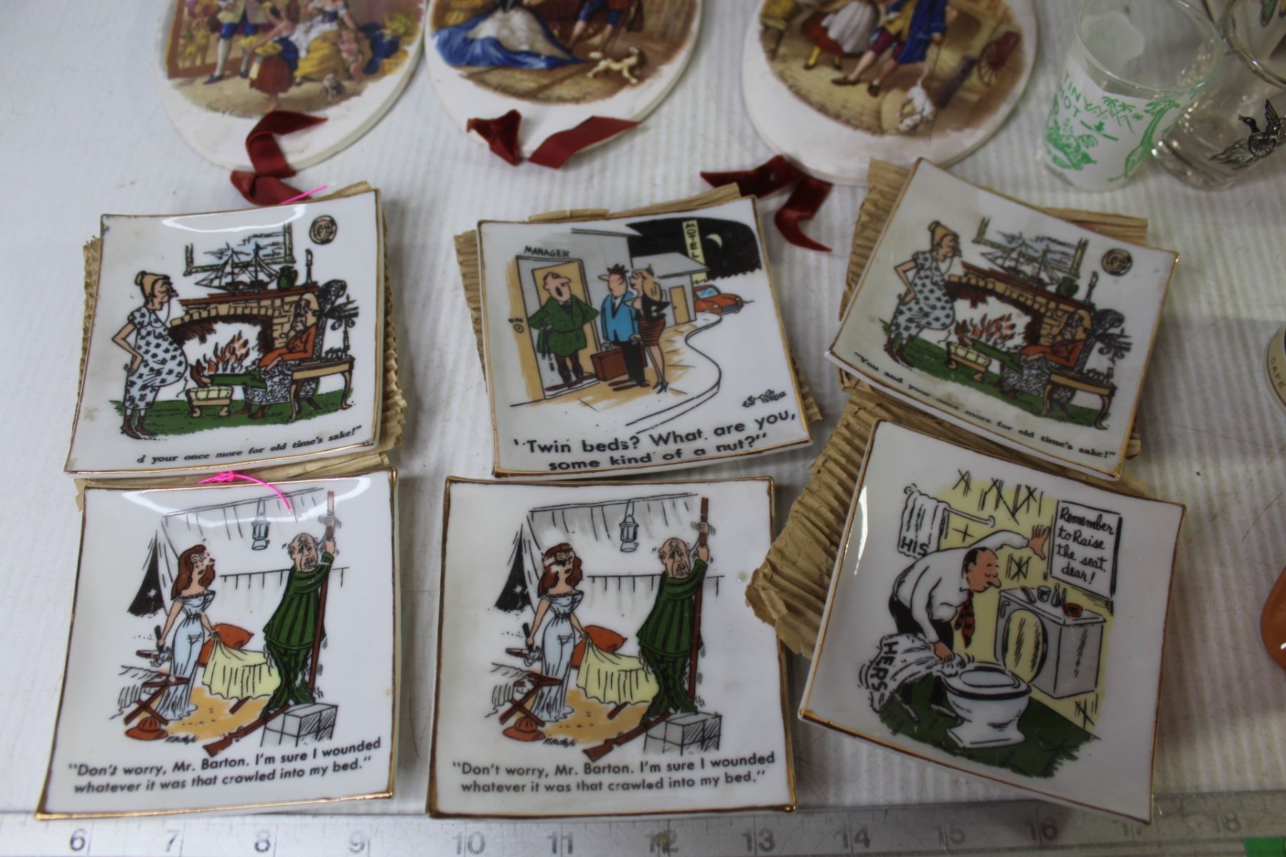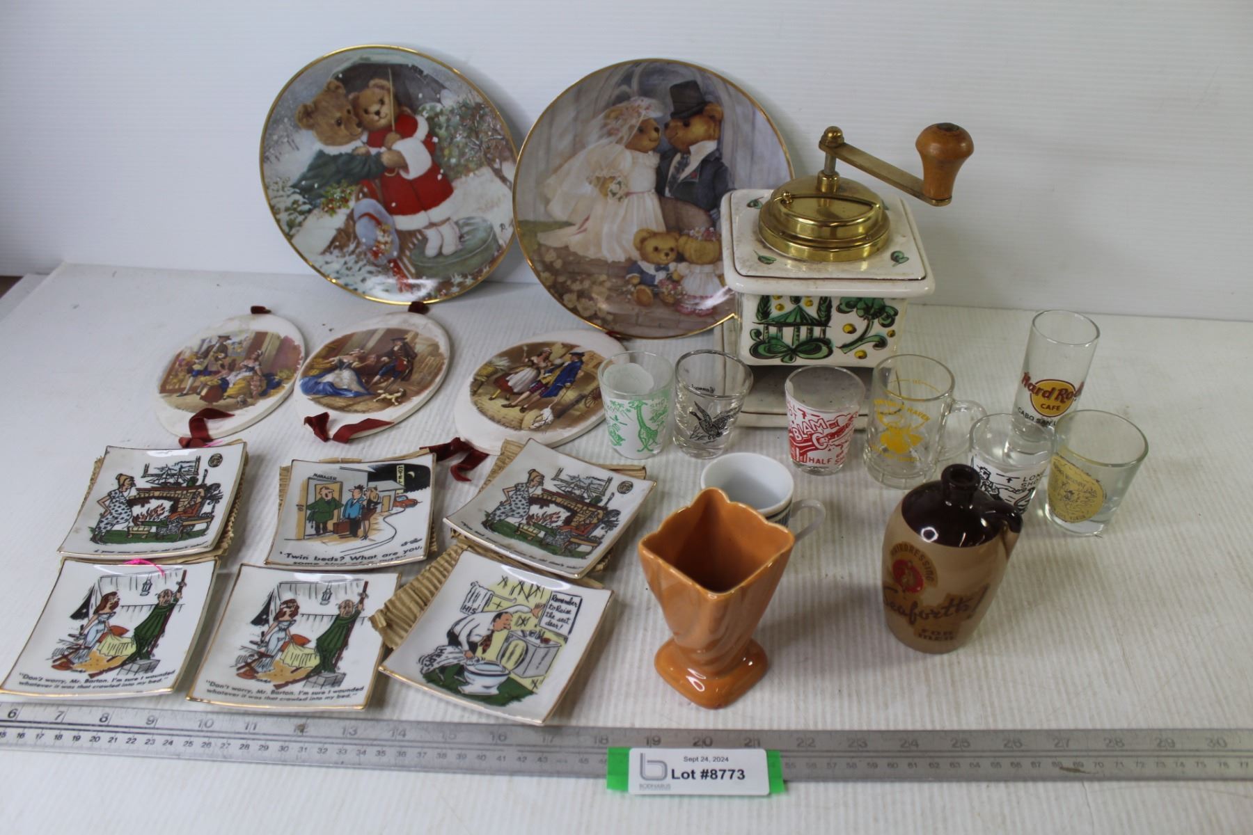 Ceramic Coffee Grinder - Franklin Mint Bear Plates - Sm Ceramic Wall Hanging Plates - Sm Ceramic Vase - Misc. Shot Glasses