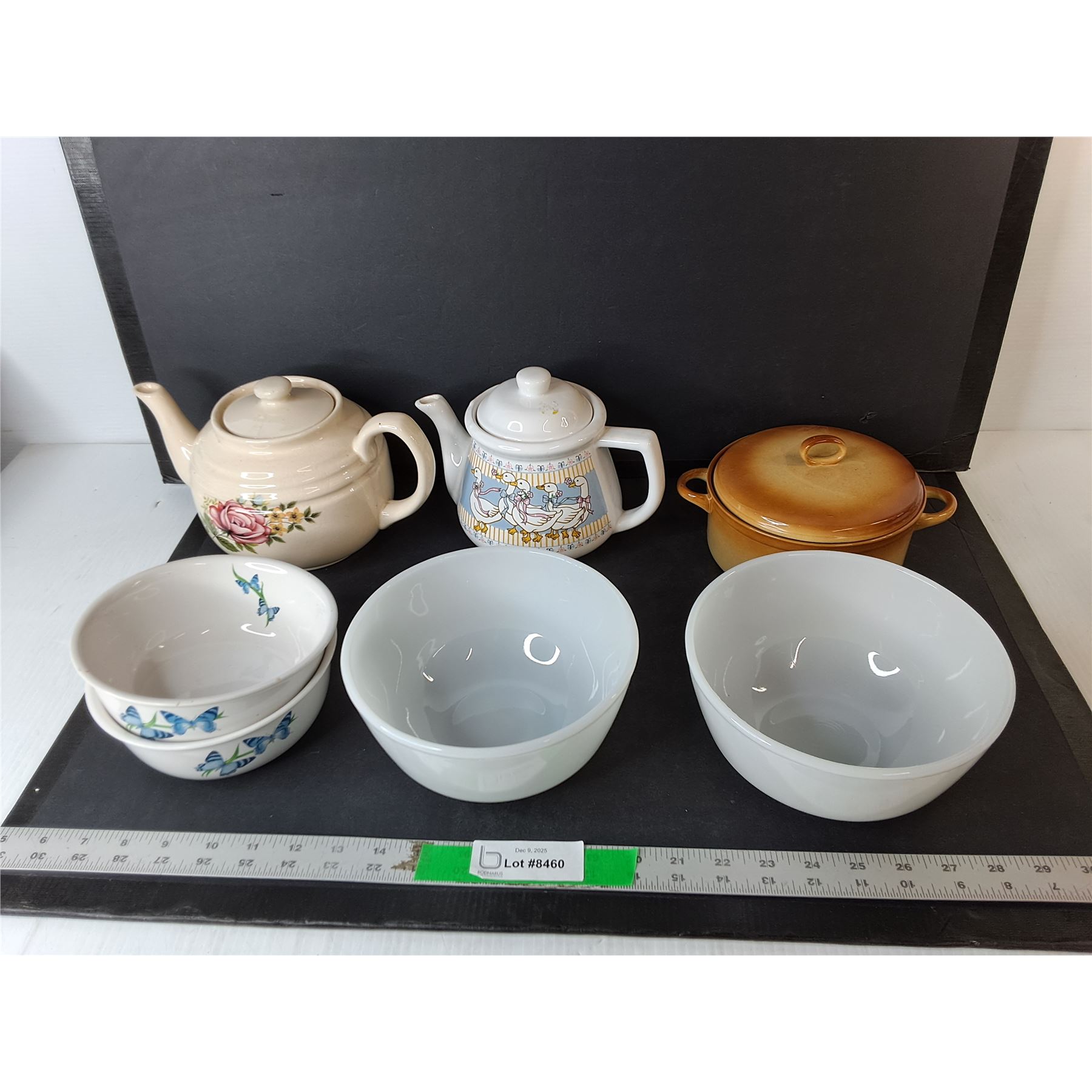 Ceramic Dish Lot & (2) Fire King Glass Bowls