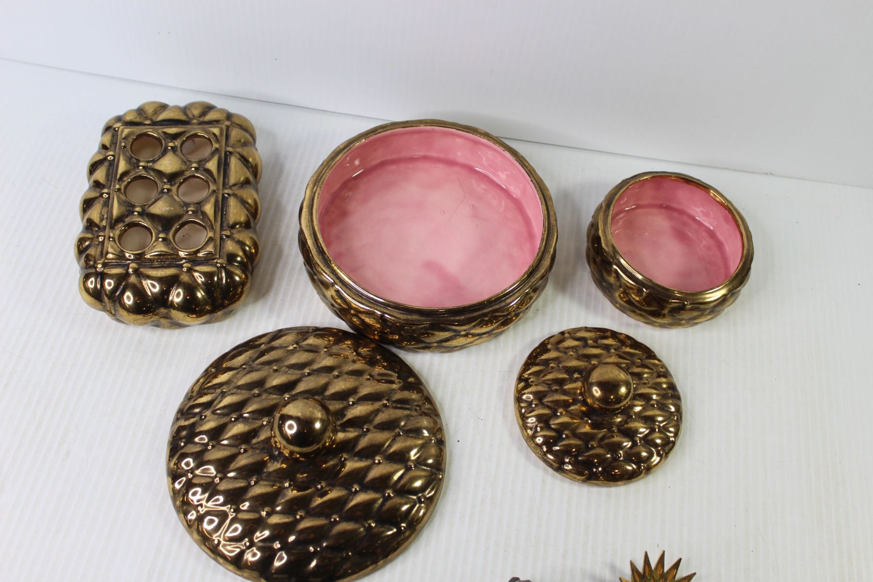 Ceramic Dishes w/Lids - Bottle w/Flip Lid - Acrylic Pot Holders - Soap Stone Carving - Misc. Items