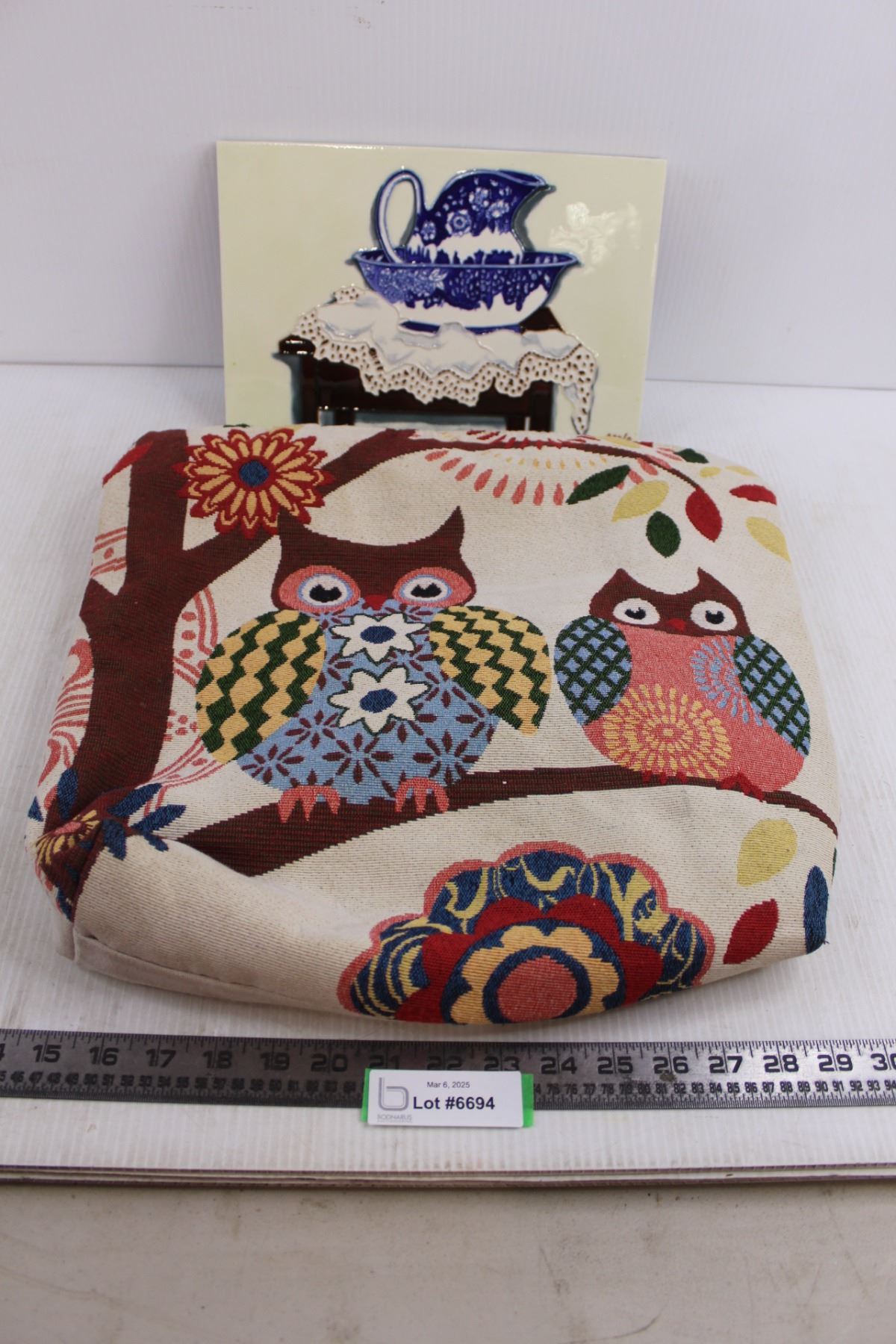 Ceramic Wall Art 12" x 8", Owl Themed Shoulder Bag