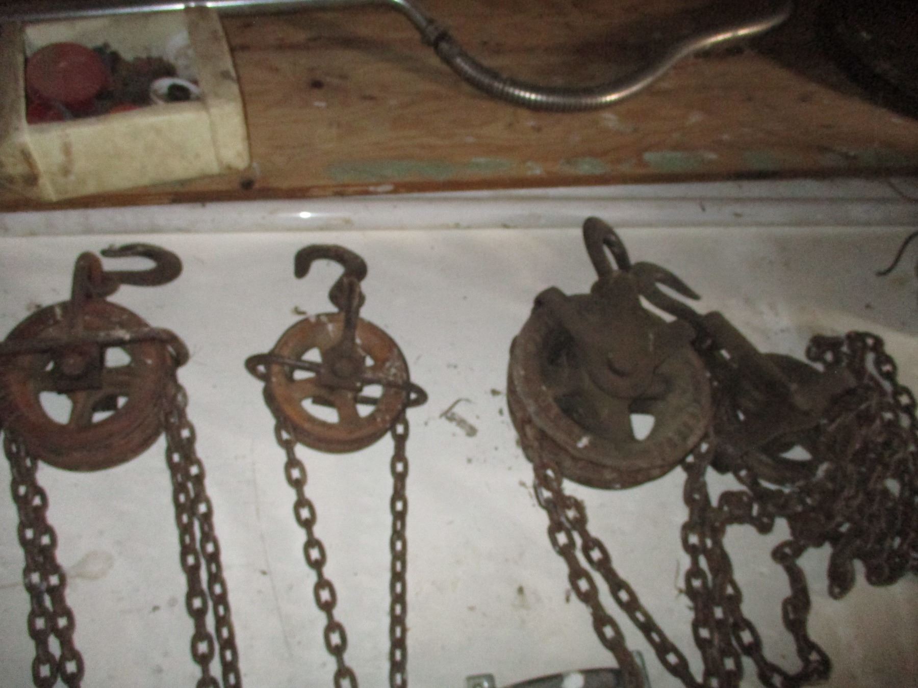 Chain Hoists, Wheels, Exhaust Blower, Light Fixture, Ball hitches, Gopher traps, Swivel wheels,