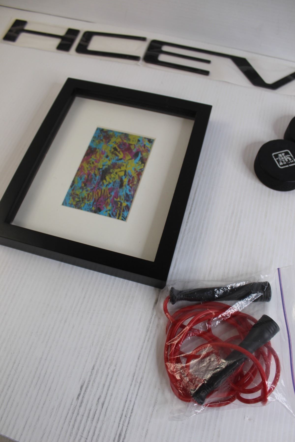 Chevrolet Emblem Letters, (4) Hockey Pucks, Misc.