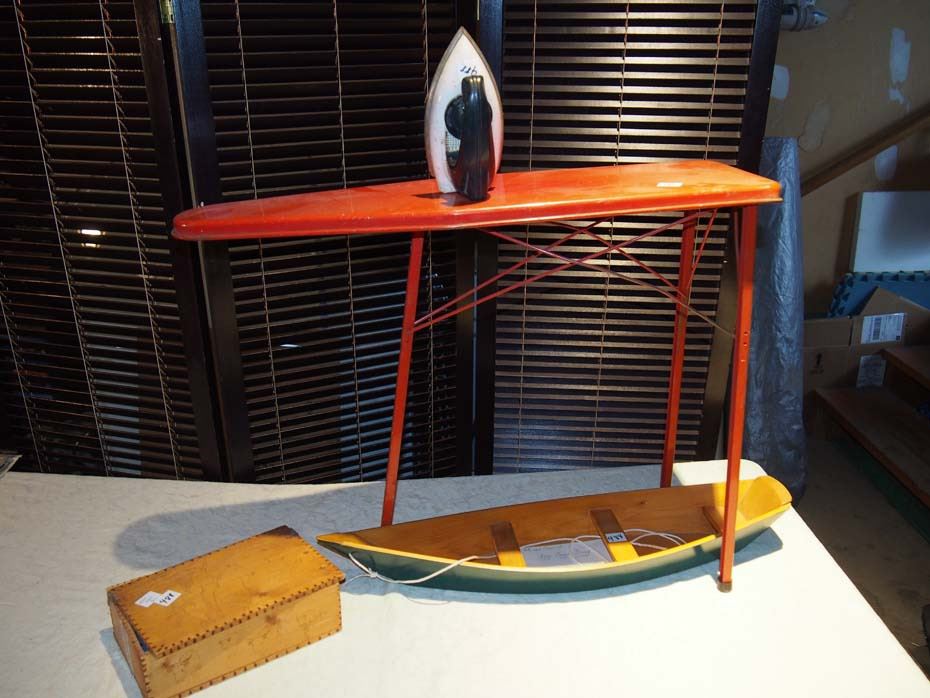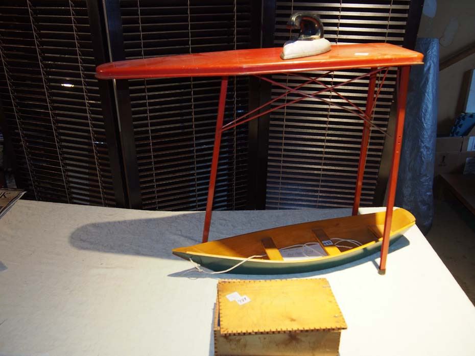 Child Ironing Board w/ Iron - Wooden Canoe - Trinket Box w/ Indian Carving