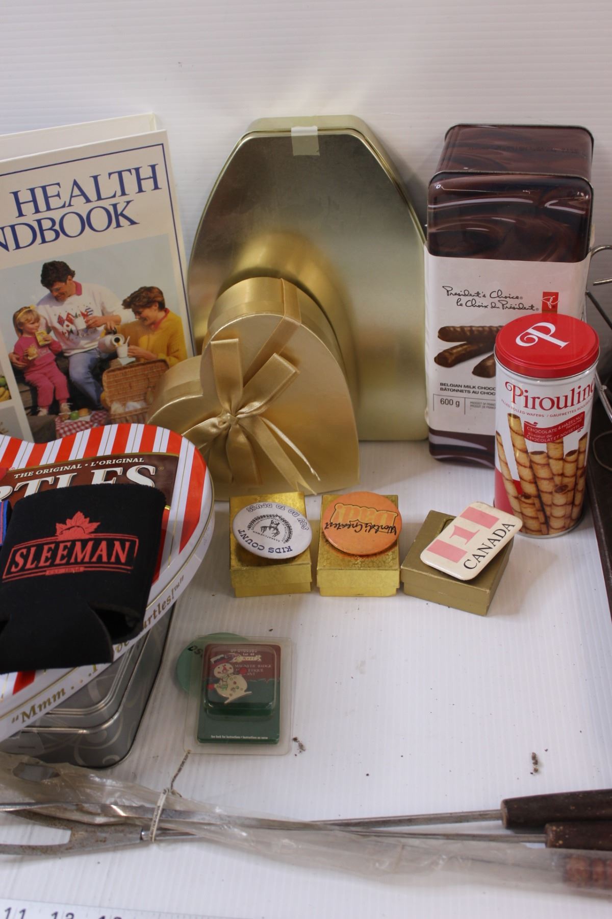 Chocolate Tins, Beer Cozys, BBQ Forks, Misc.
