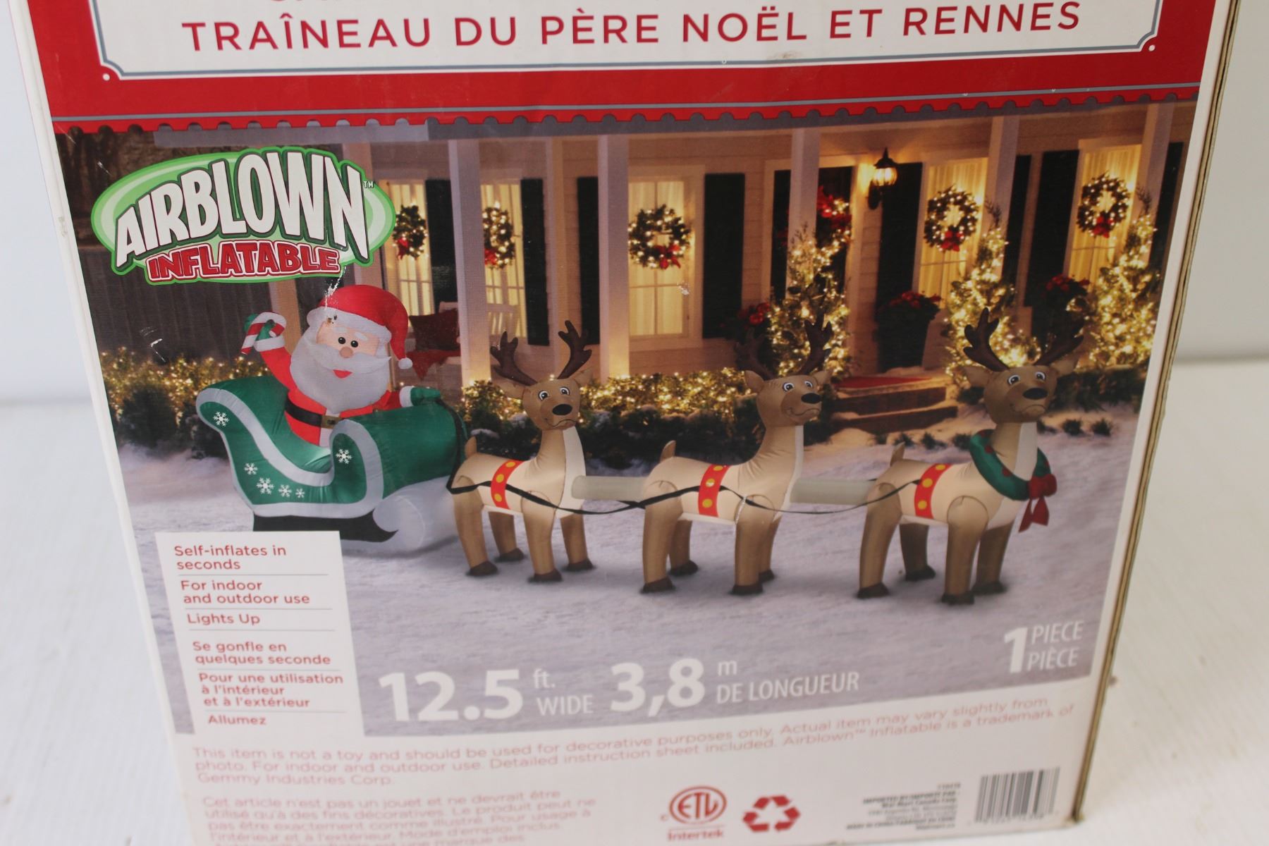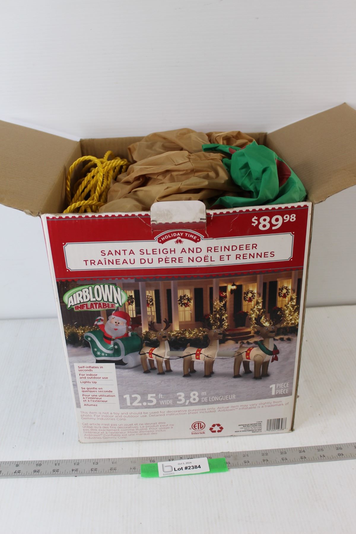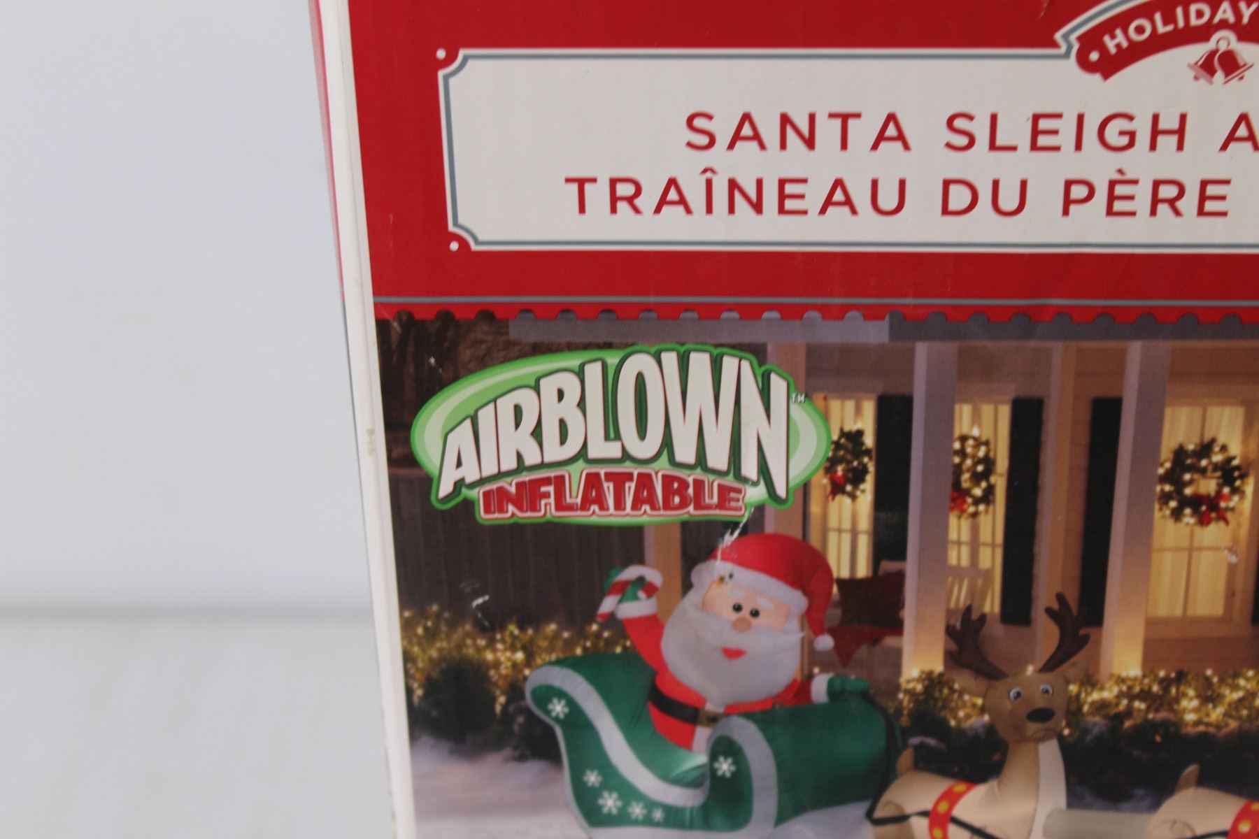 Christmas Holiday Santa Sleigh and Reindeer Blow Up Decoration - As Is