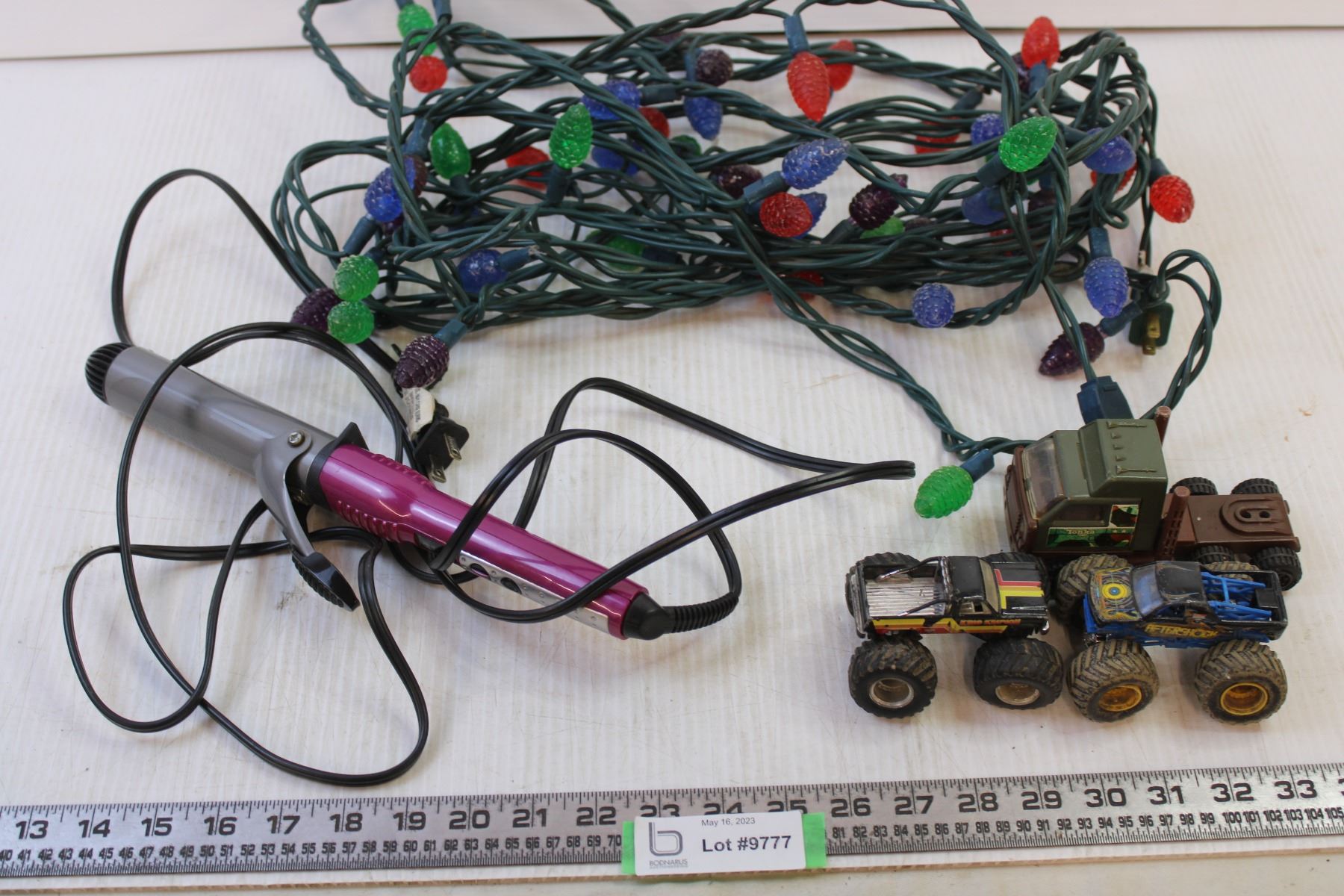 Christmas Lights Works + Toy Trucks + Hair Curler Untested