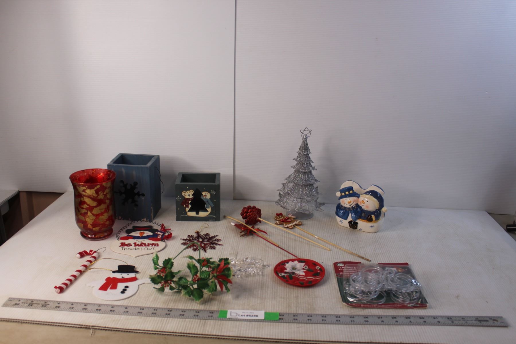 Christmas Lot- Napkin Holder, Glass Vase, Misc.