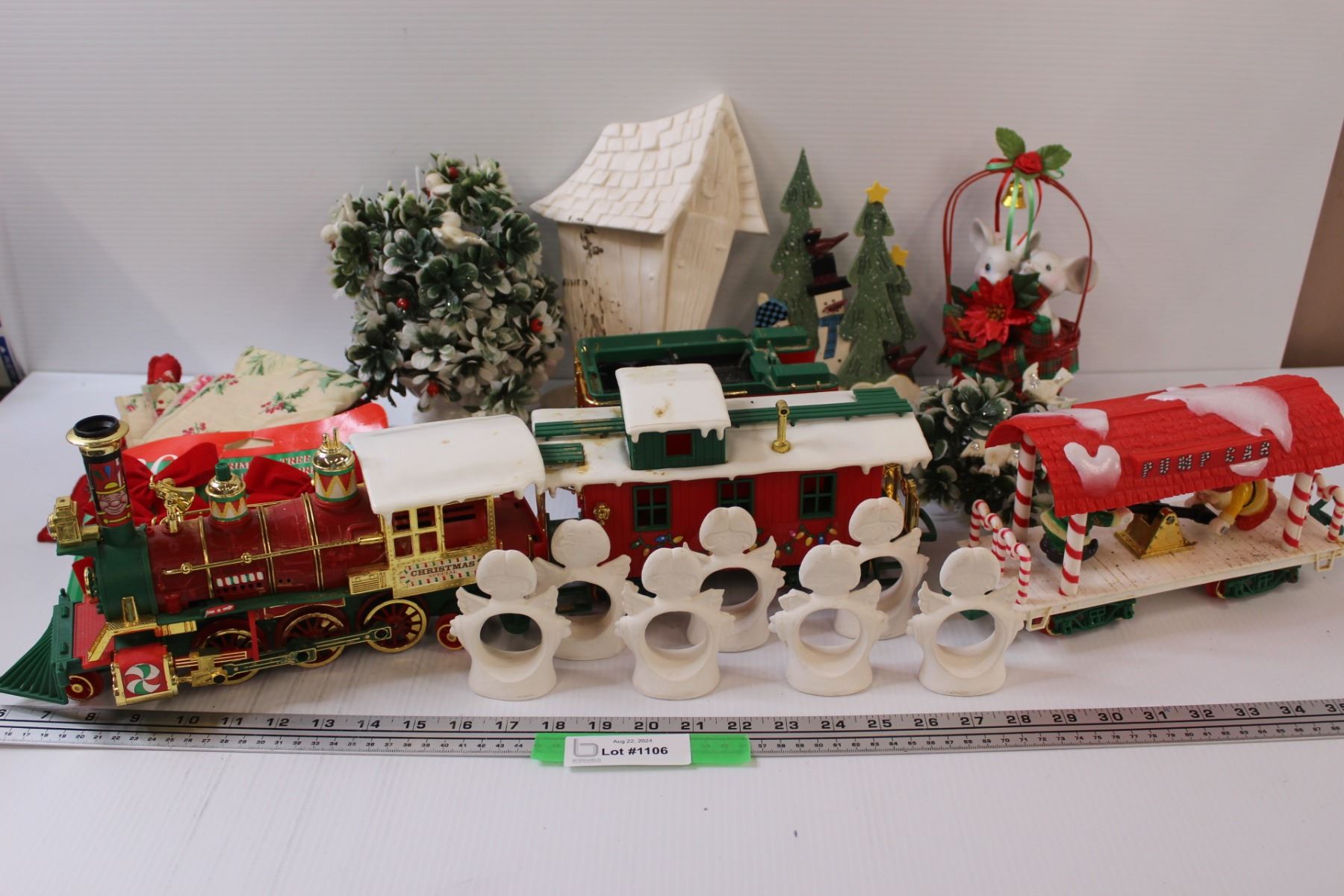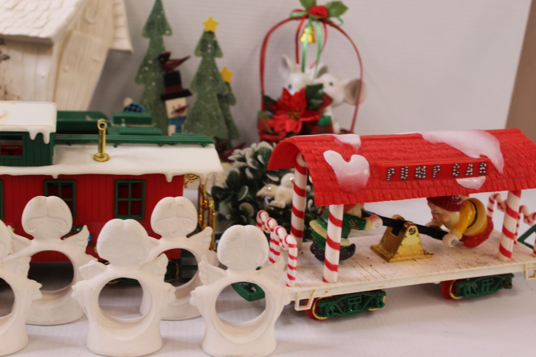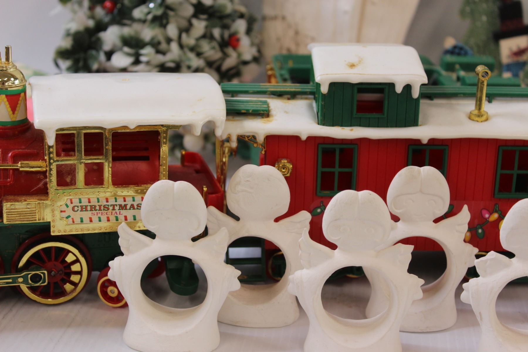 Christmas Lot: Train, Floral Displays, Angel Napkin Holders, Bows, Mice, Misc.