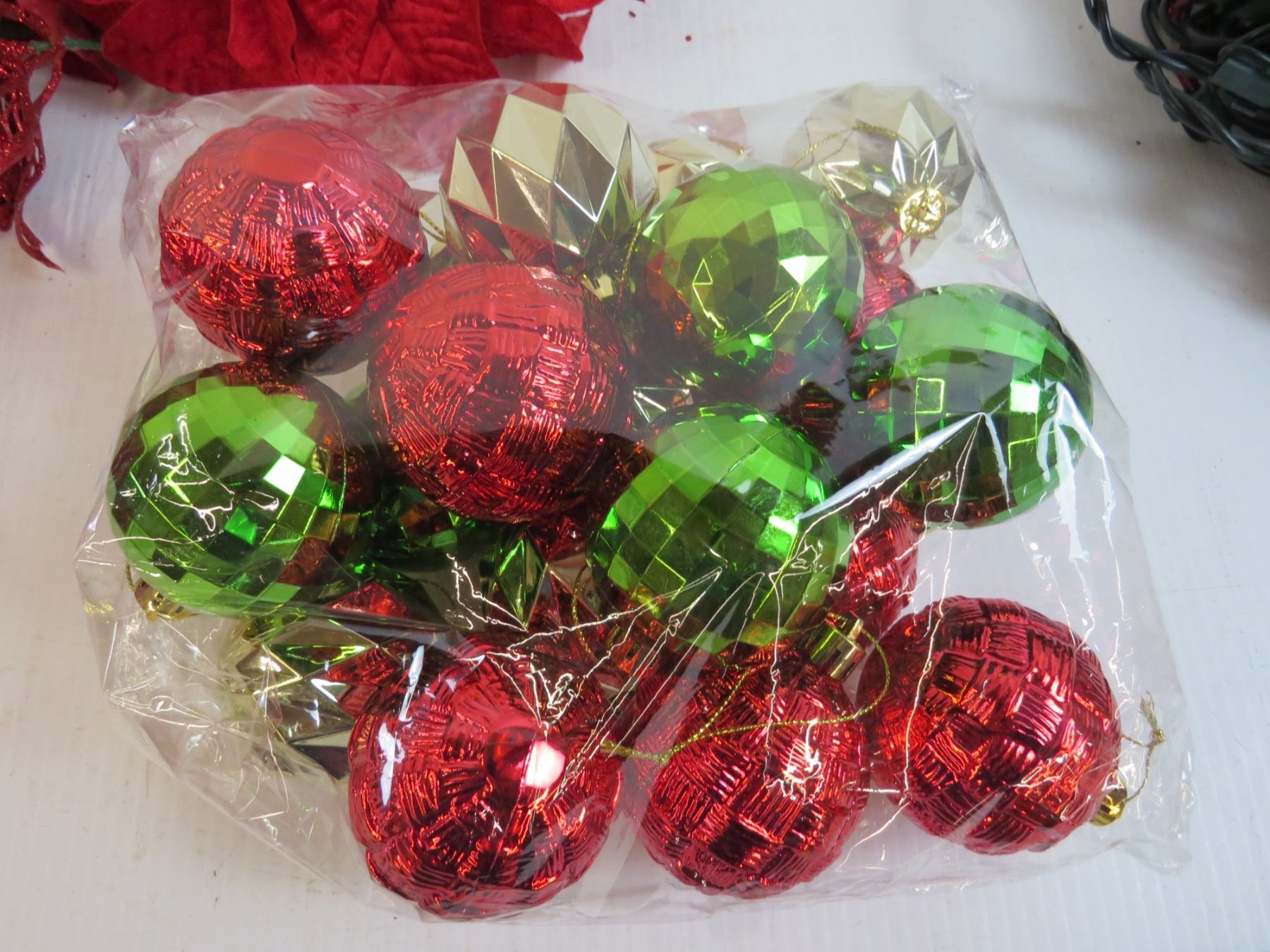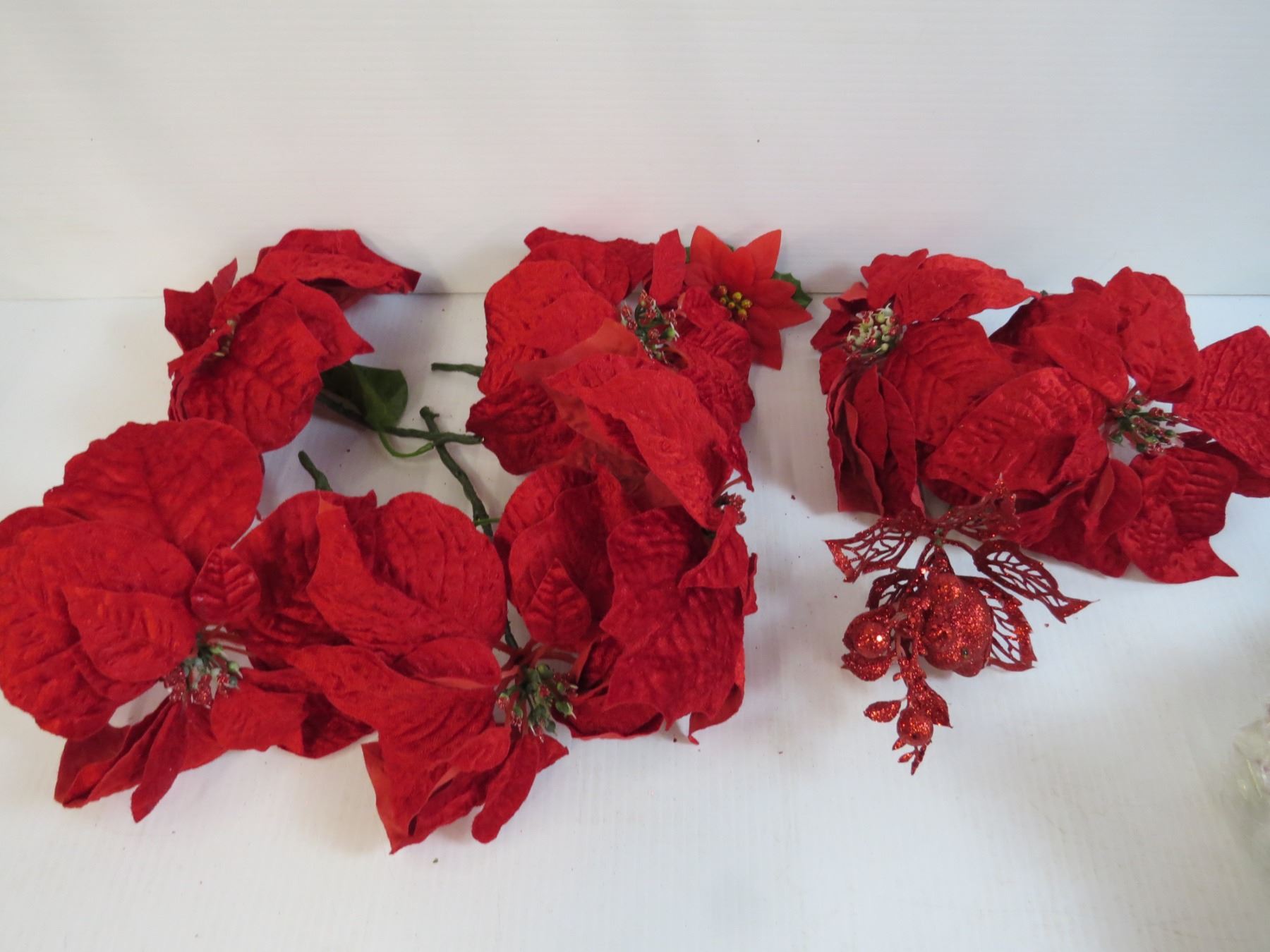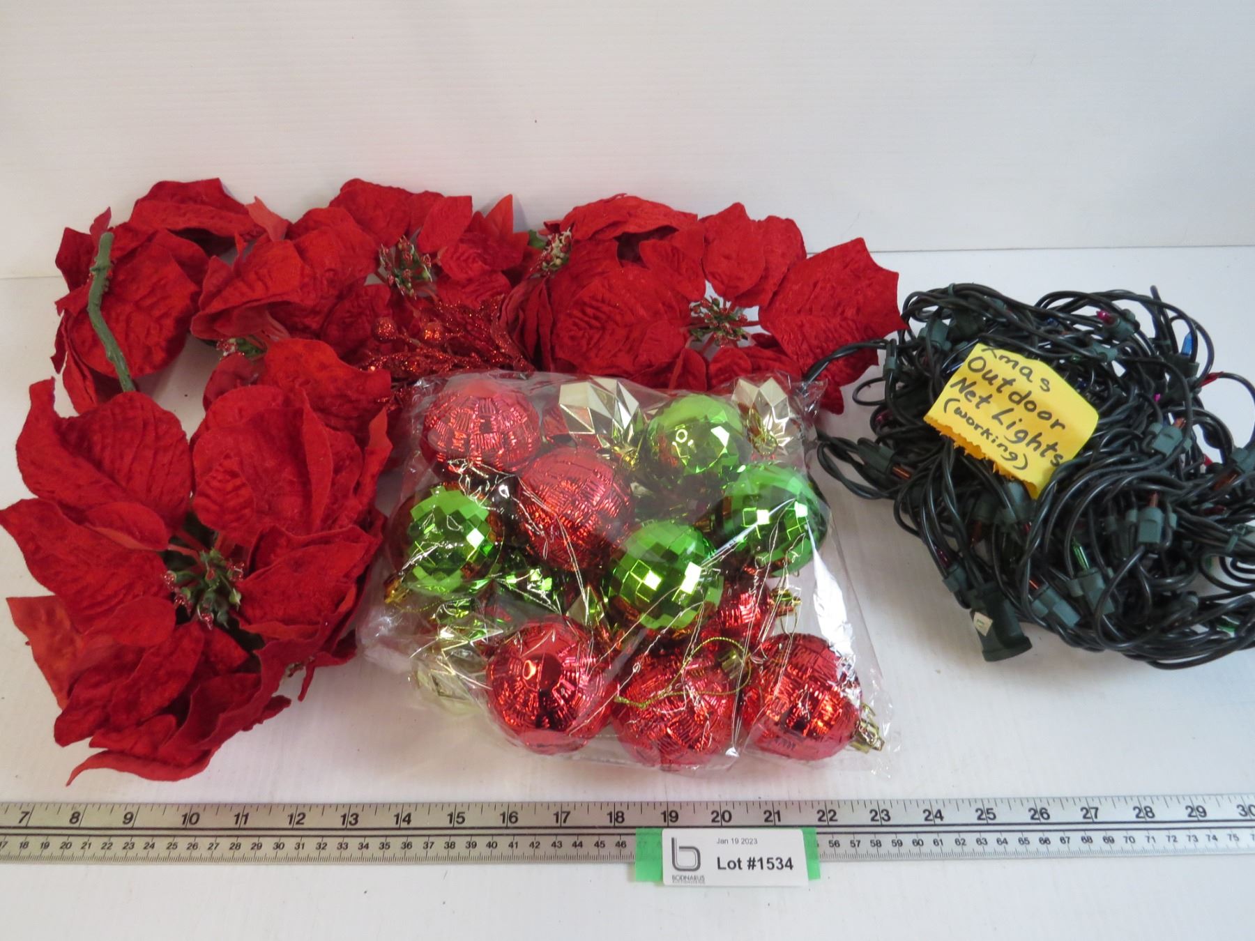 Christmas Ornaments - Net Lights (working) - Faux Poinsettias