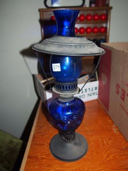 Clear Blue Oil Lamp W/ Shroud