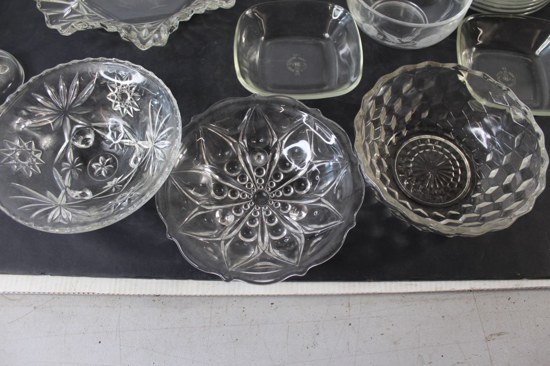Clear Glass - (6) Bowls, (7) Small Plates, Cup, (3) Trays, Lid