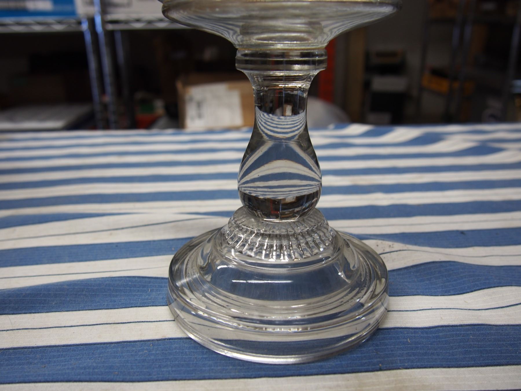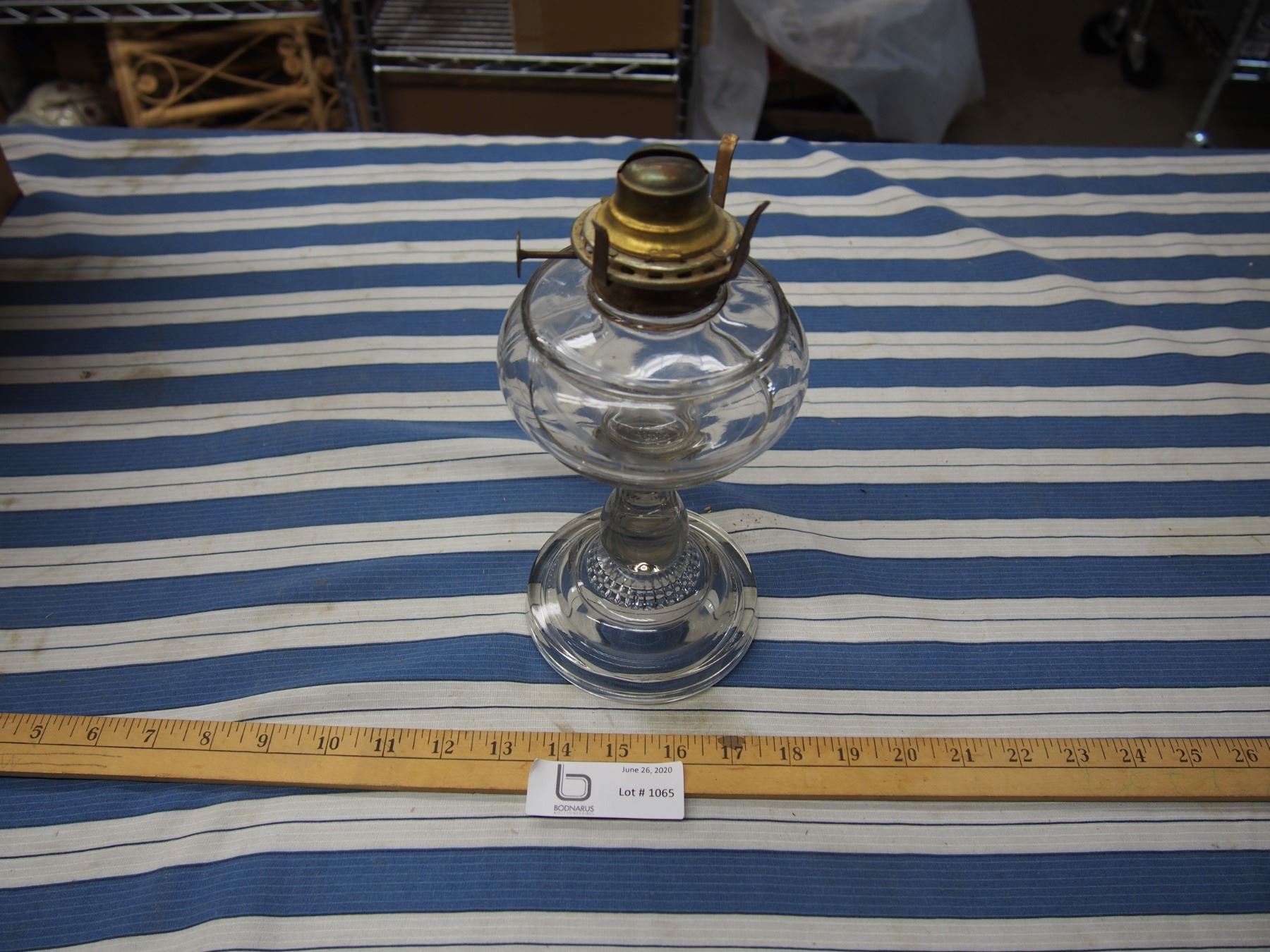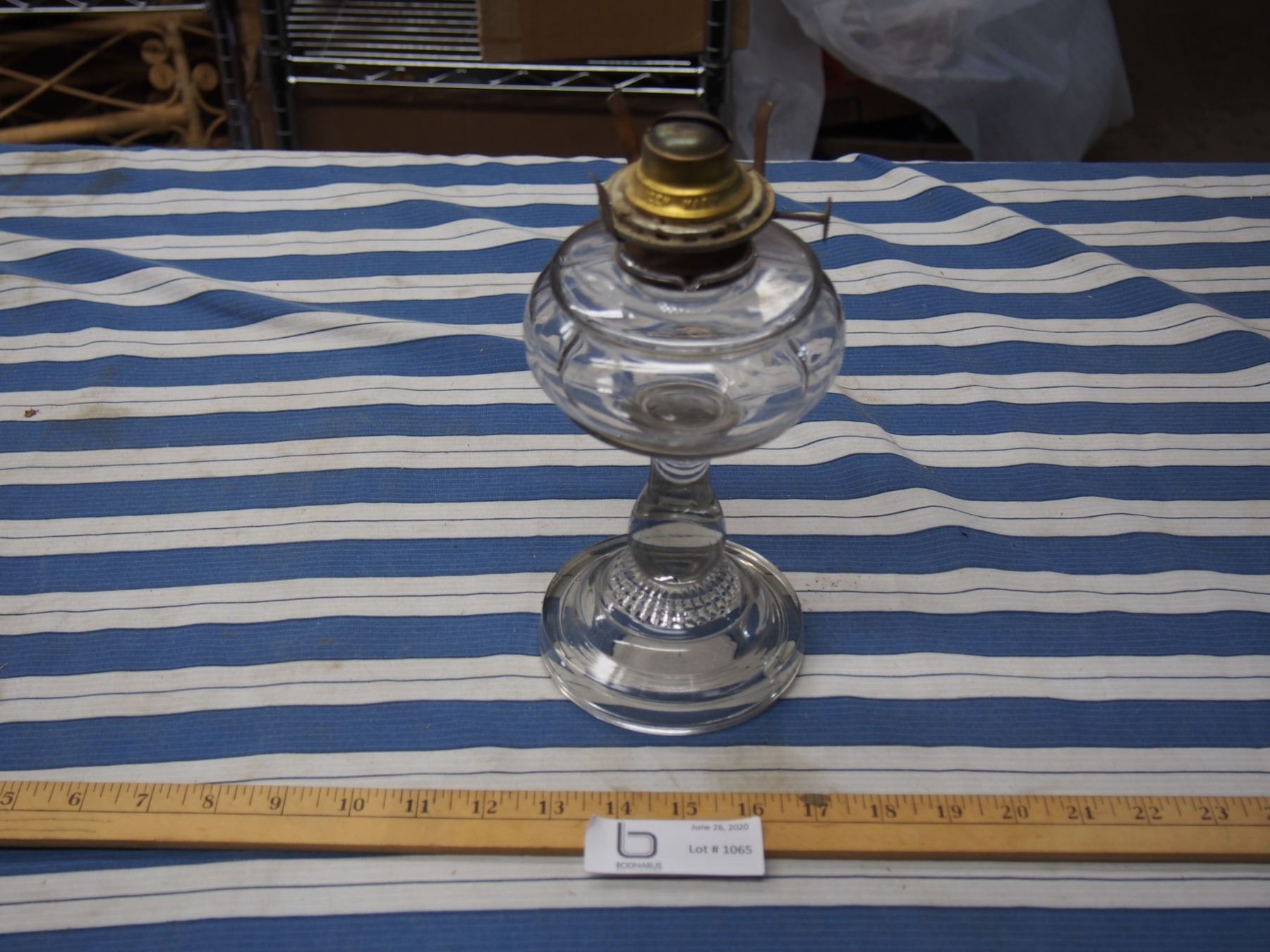 Clear Glass Oil Lamp *no chimney; missing one clip