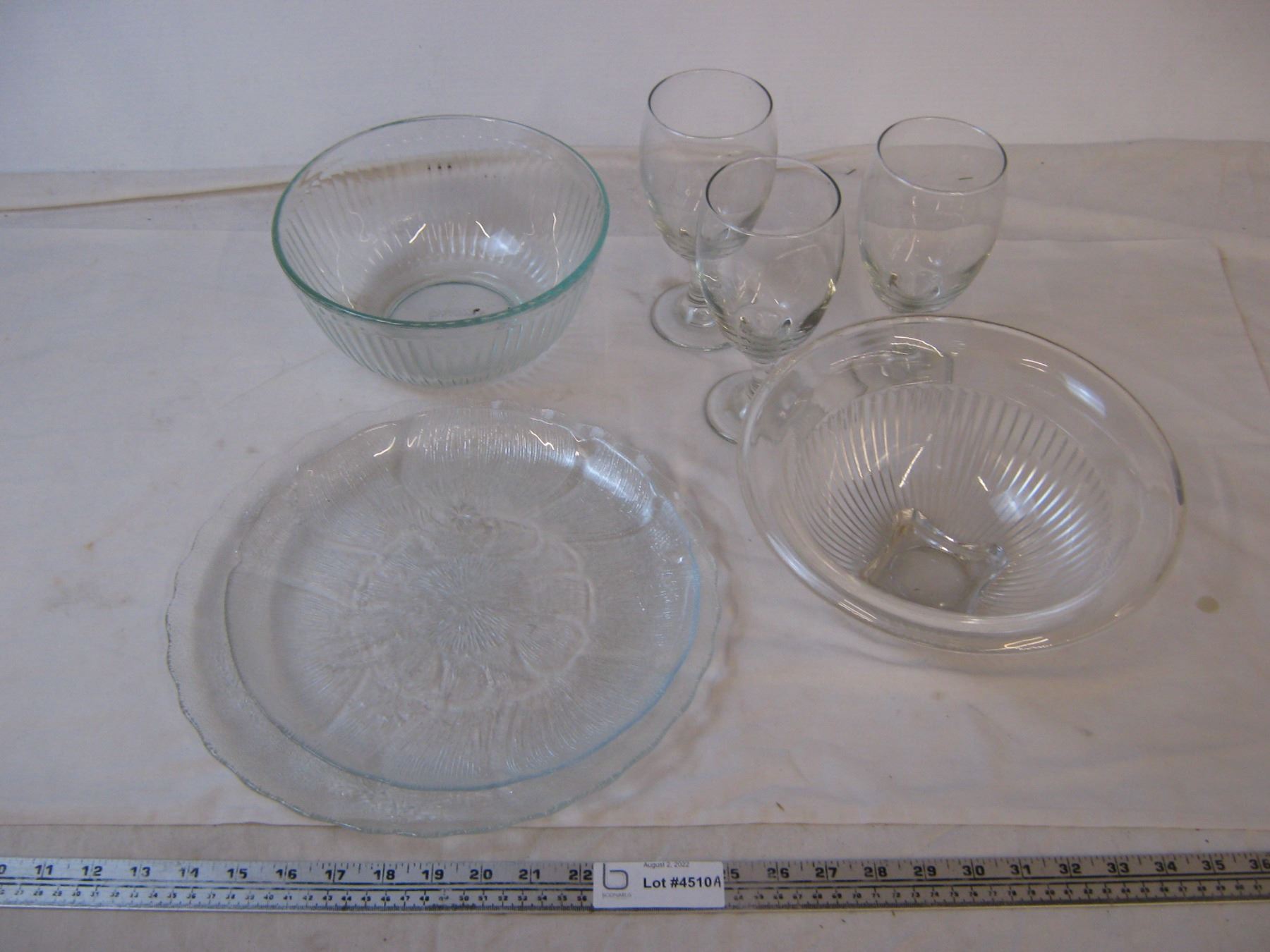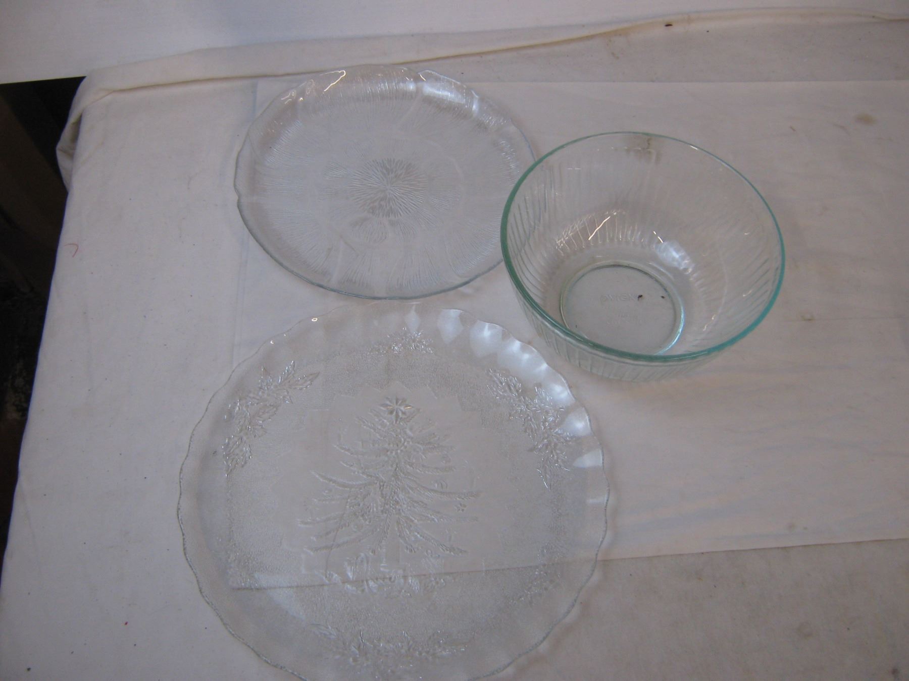 Clear glassware,pyrex bowl, (2) serving trays (3) beer glasses,glass bowl