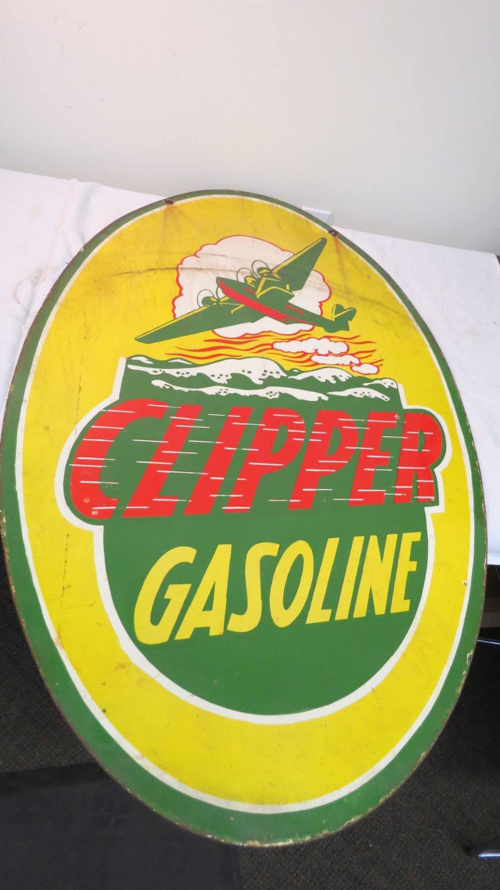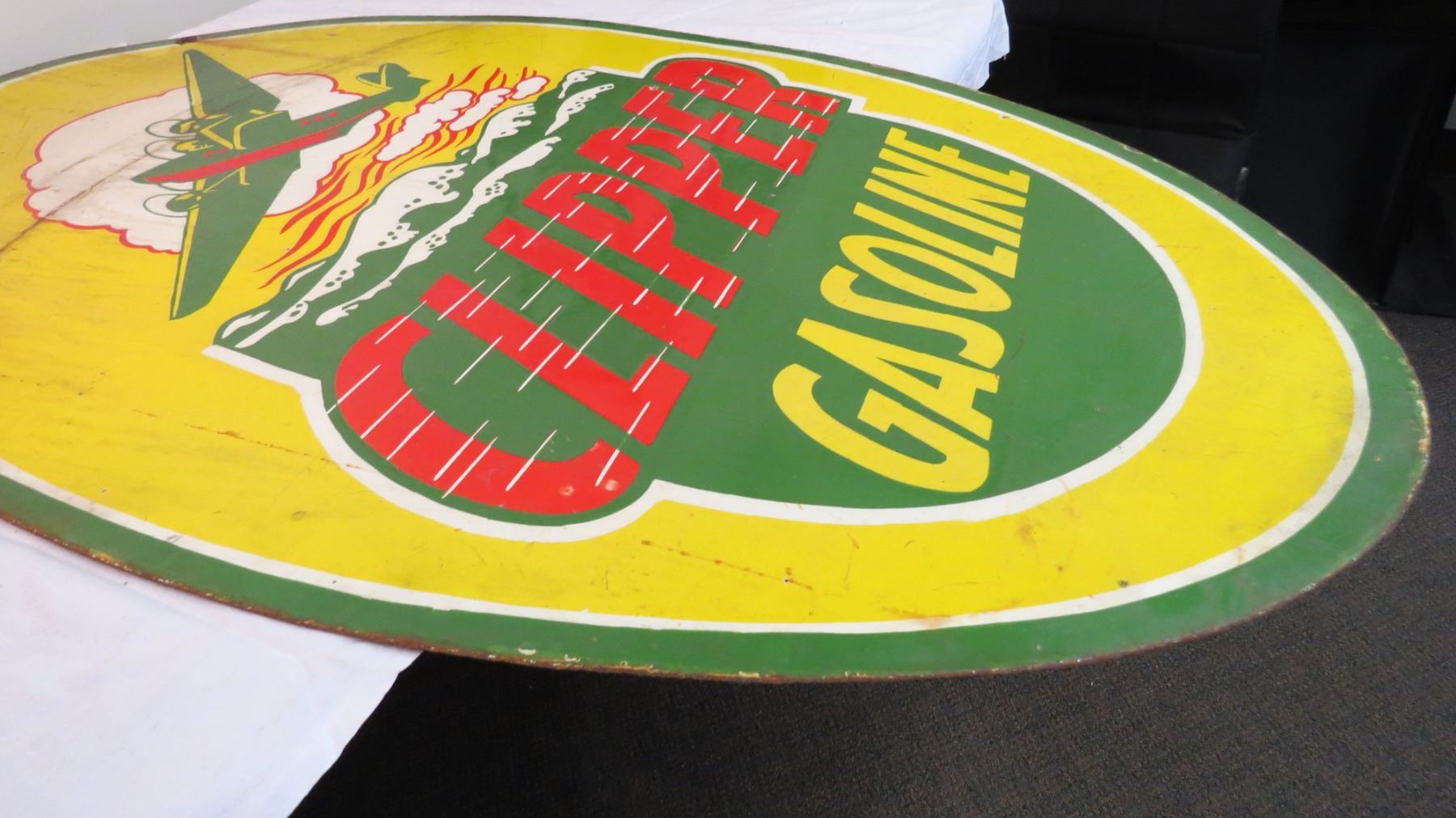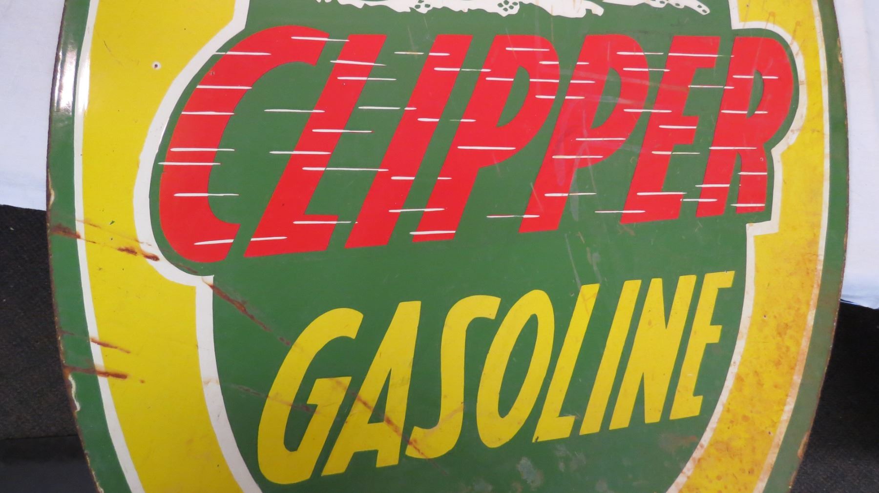 Clipper gasoline double sided porcelain sign - 27"x48"