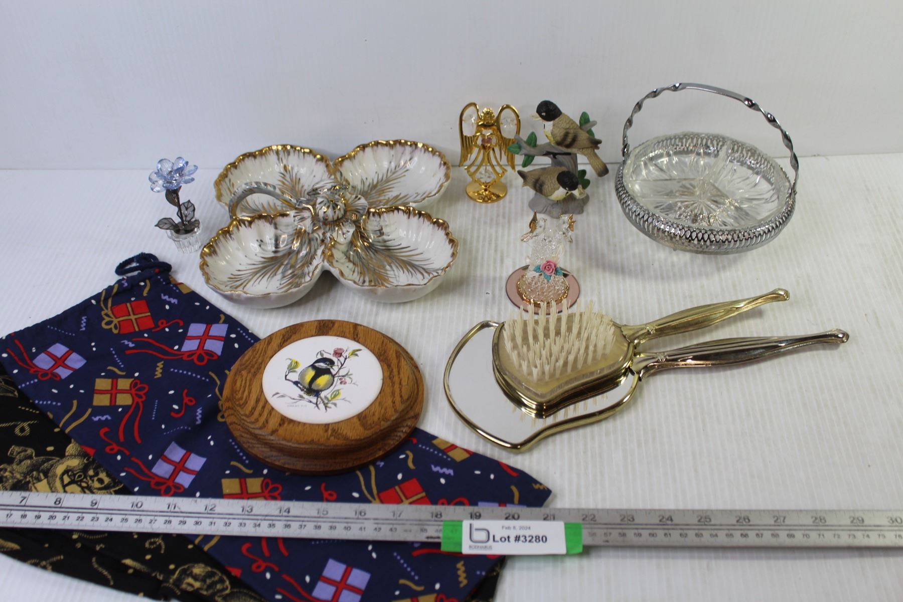 Cloth Bags - Divided Serving Dishes - Vintage Mirror & Brush Set - Decorative Ornaments