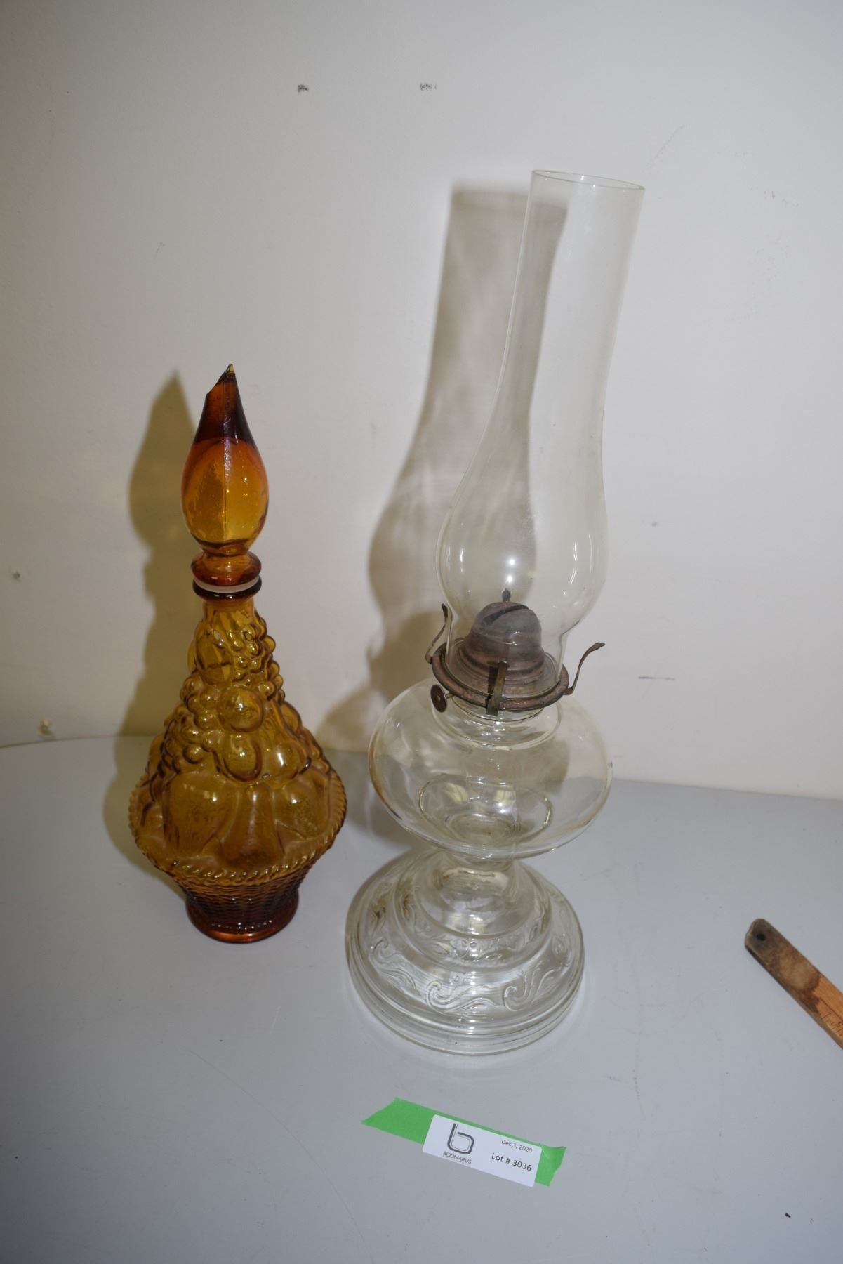 Coal oil lamp and wine tub with chipped lid
