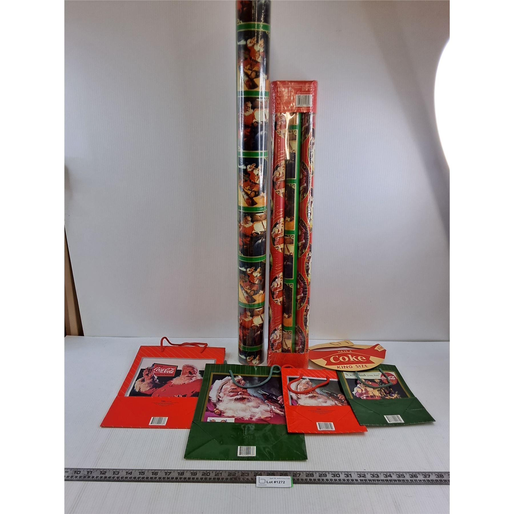 Coca-Cola Christmas Wrapping Paper - Sealed Rolls, Gift Bags, Cardboard Visor